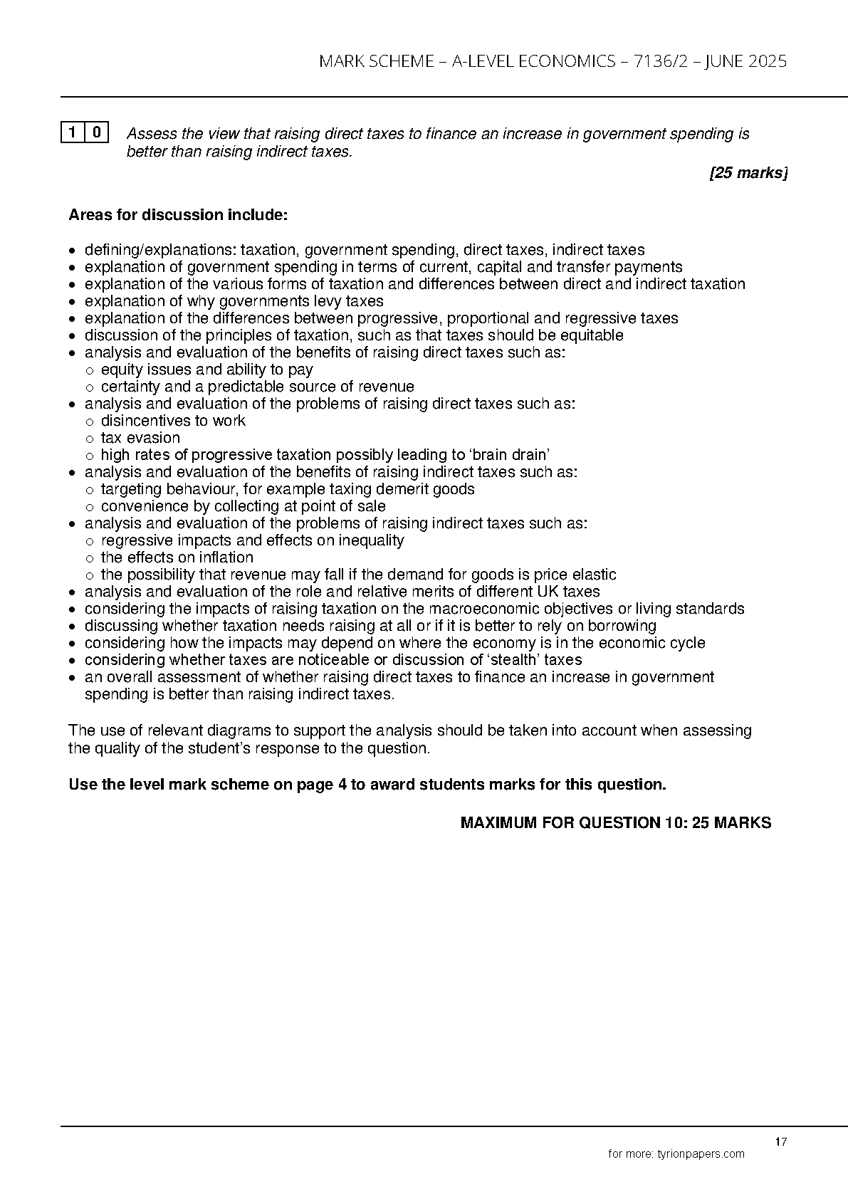 2025 AQA A Level ECONOMICS Paper 2 and Mark Scheme Combined (7136/2: National and International Economy)