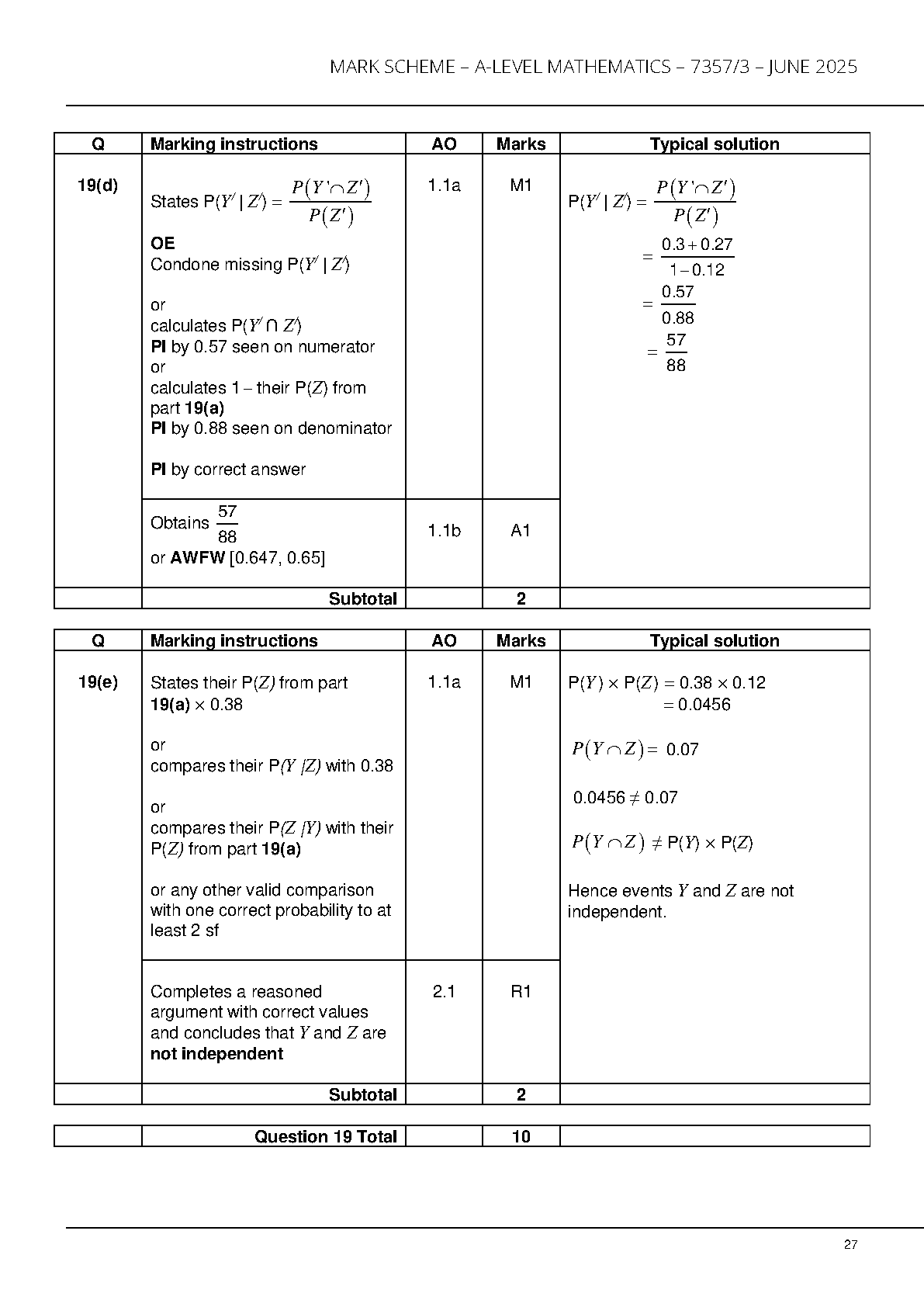 2025 AQA A Level MATHEMATICS Paper 3 and Mark Scheme Combined (7357/3)