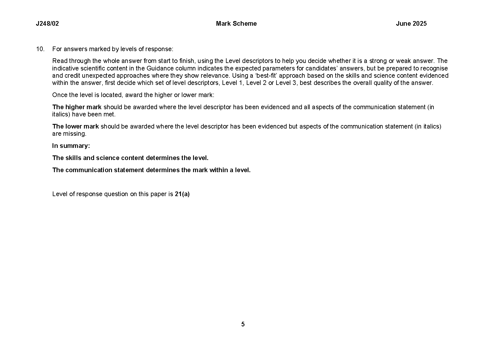 2024 OCR GCSE BIOLOGY A PAPER 1 MARK SCHEME (J247/...
