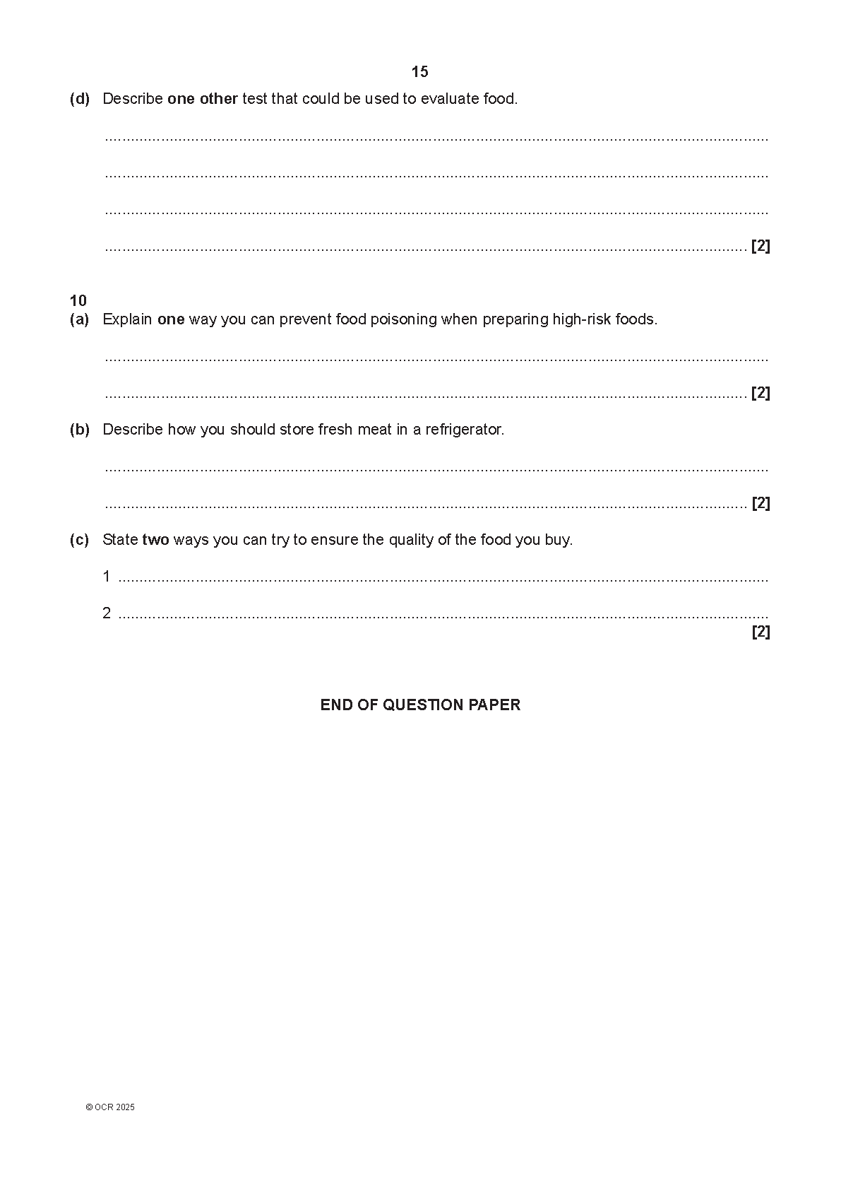 2025 OCR GCSE Food Preparation and Nutrition Paper 1 and Mark Scheme Combined (J309/01 Food preparation and nutrition )