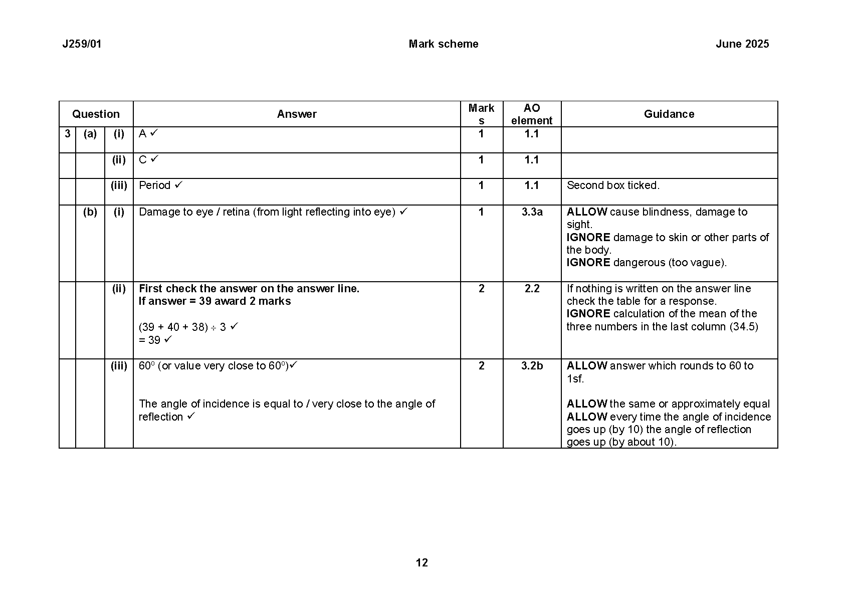 2024 OCR GCSE BIOLOGY A PAPER 1 MARK SCHEME (J247/...