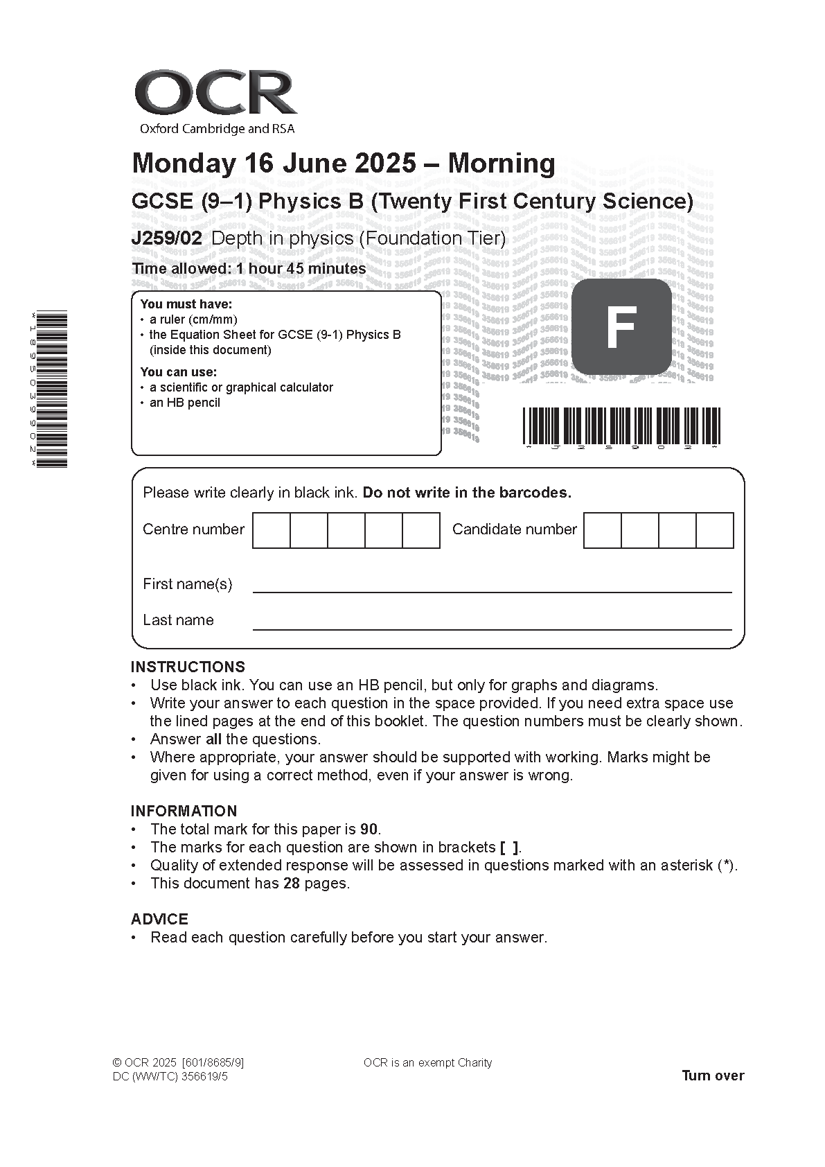 For Foundation‑tier students taking Physics B, J259/02 (Depth in physics) is Paper 2.
