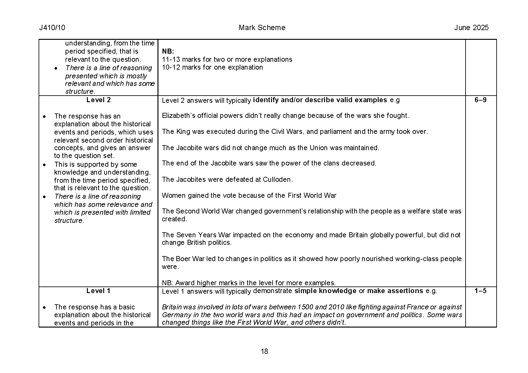 2025 OCR GCSE History A (Explaining the Modern World) Paper 10 and Mark Scheme Combined (J410/10 War and British Society c.790 to c.2010)