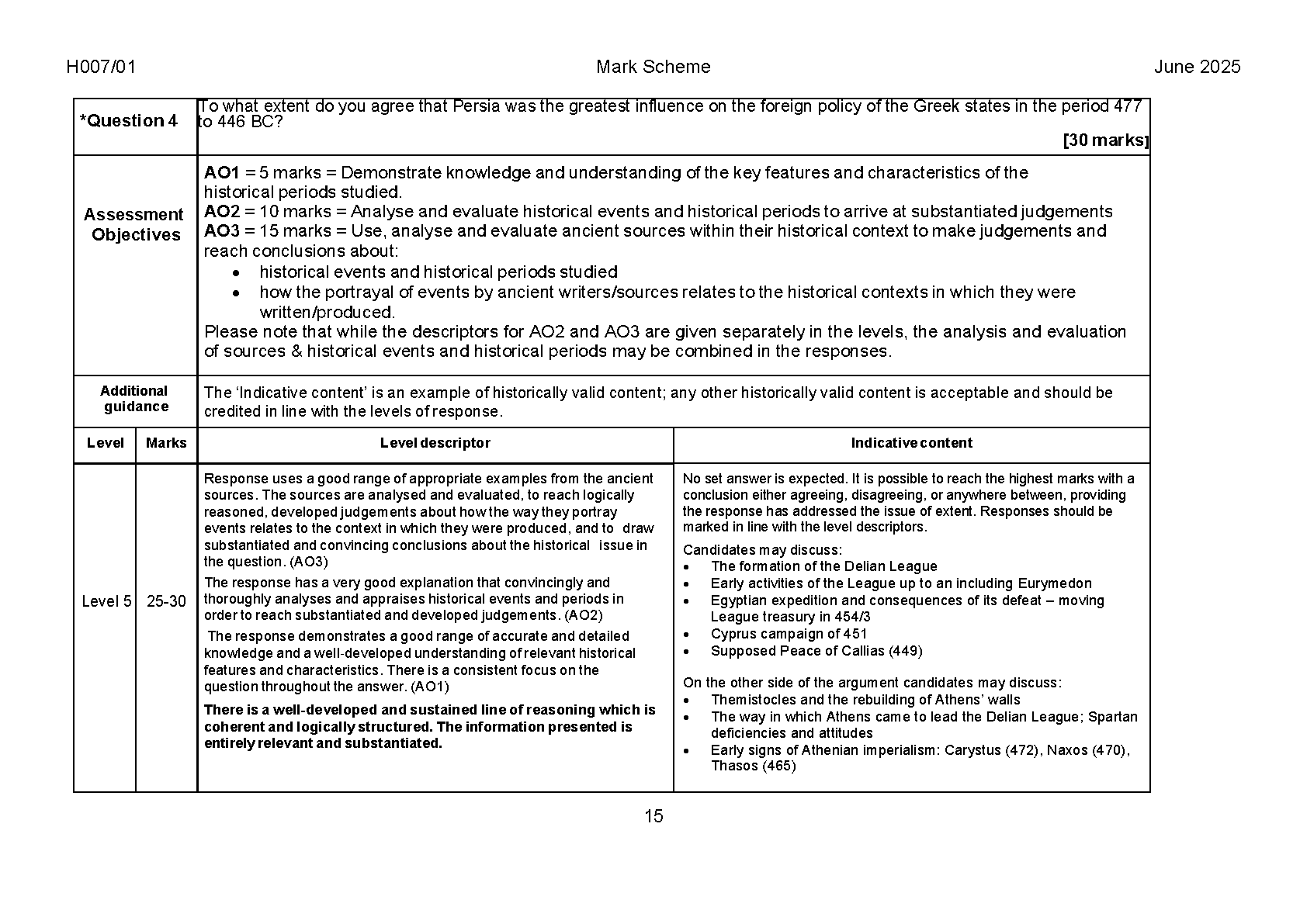 2025 OCR AS Level Ancient History Paper 1 and Mark Scheme Combined (H007/01 Relations between Greek states and between Greek and non‑Greek states, 492–404 BC)