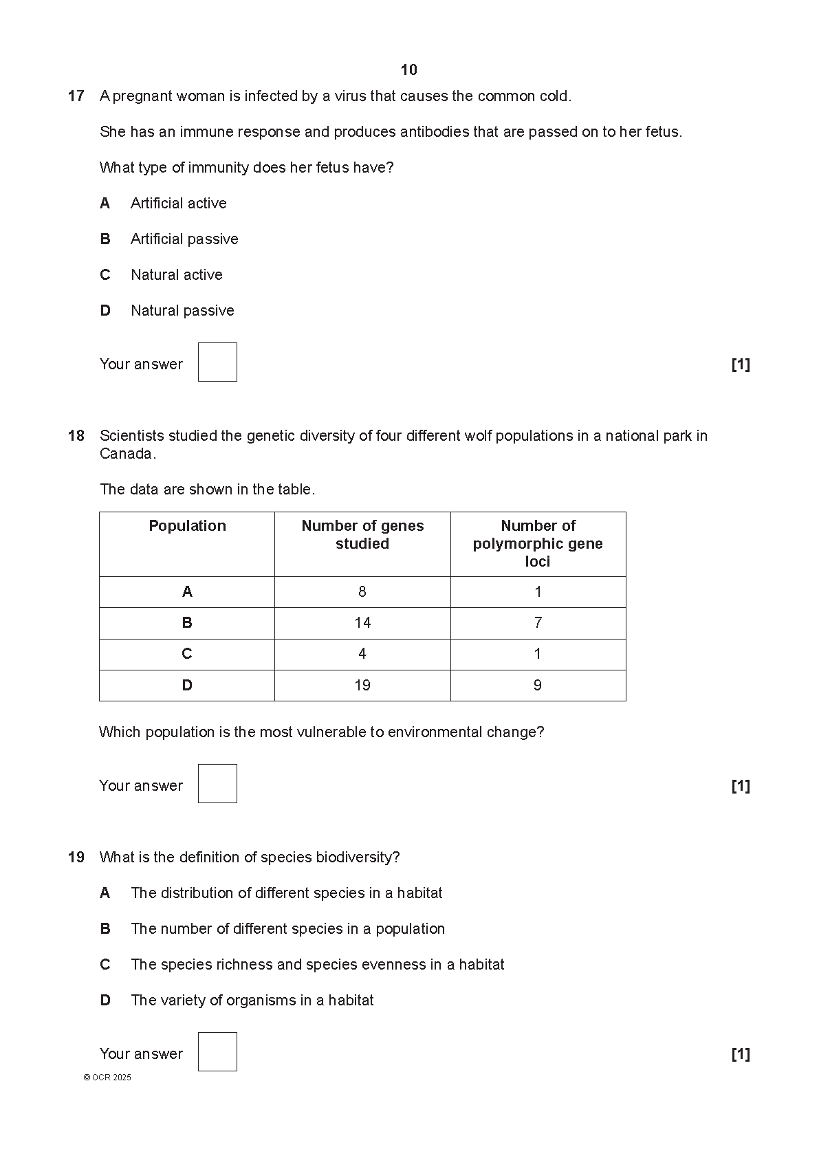 2025 OCR AS Level Biology A Paper 1 and Mark Scheme Combined (H020/01 Breadth in biology)