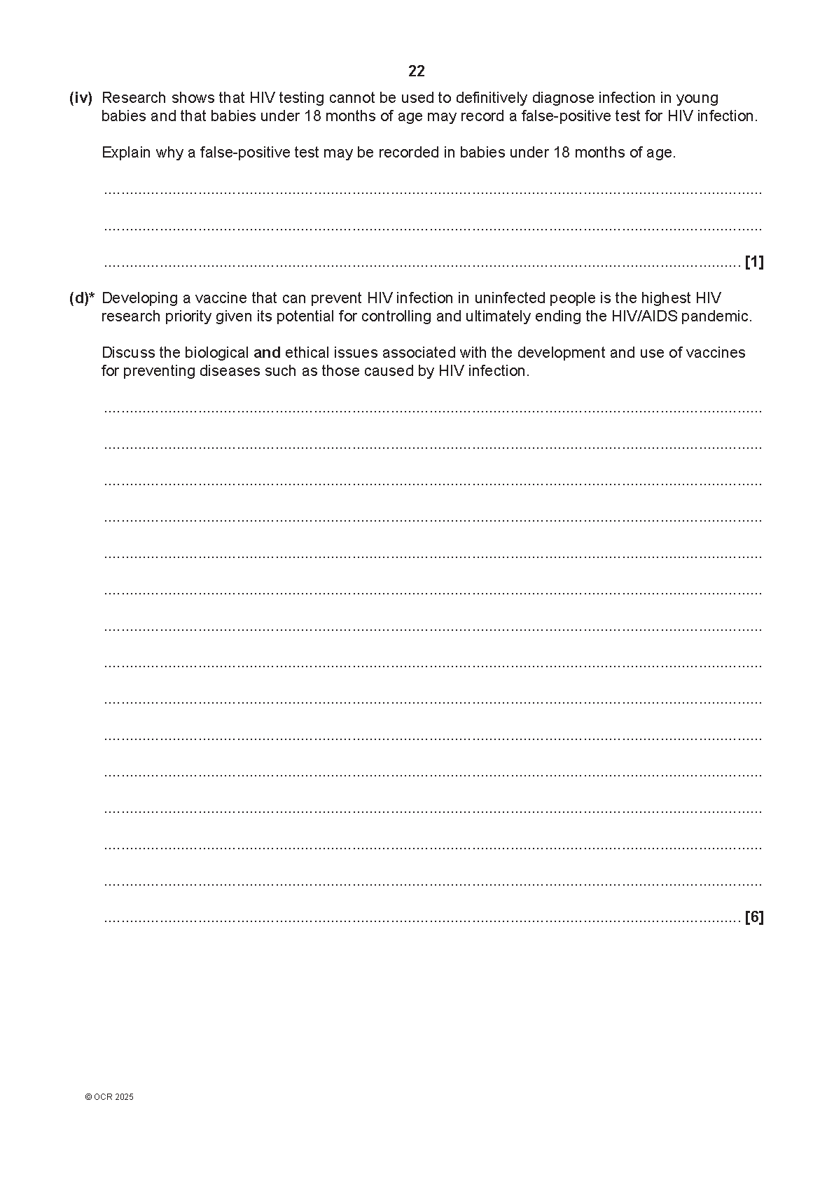 2025 OCR A Level Biology B Paper 1 and Mark Scheme Combined (H422/01 Fundamentals of biology)