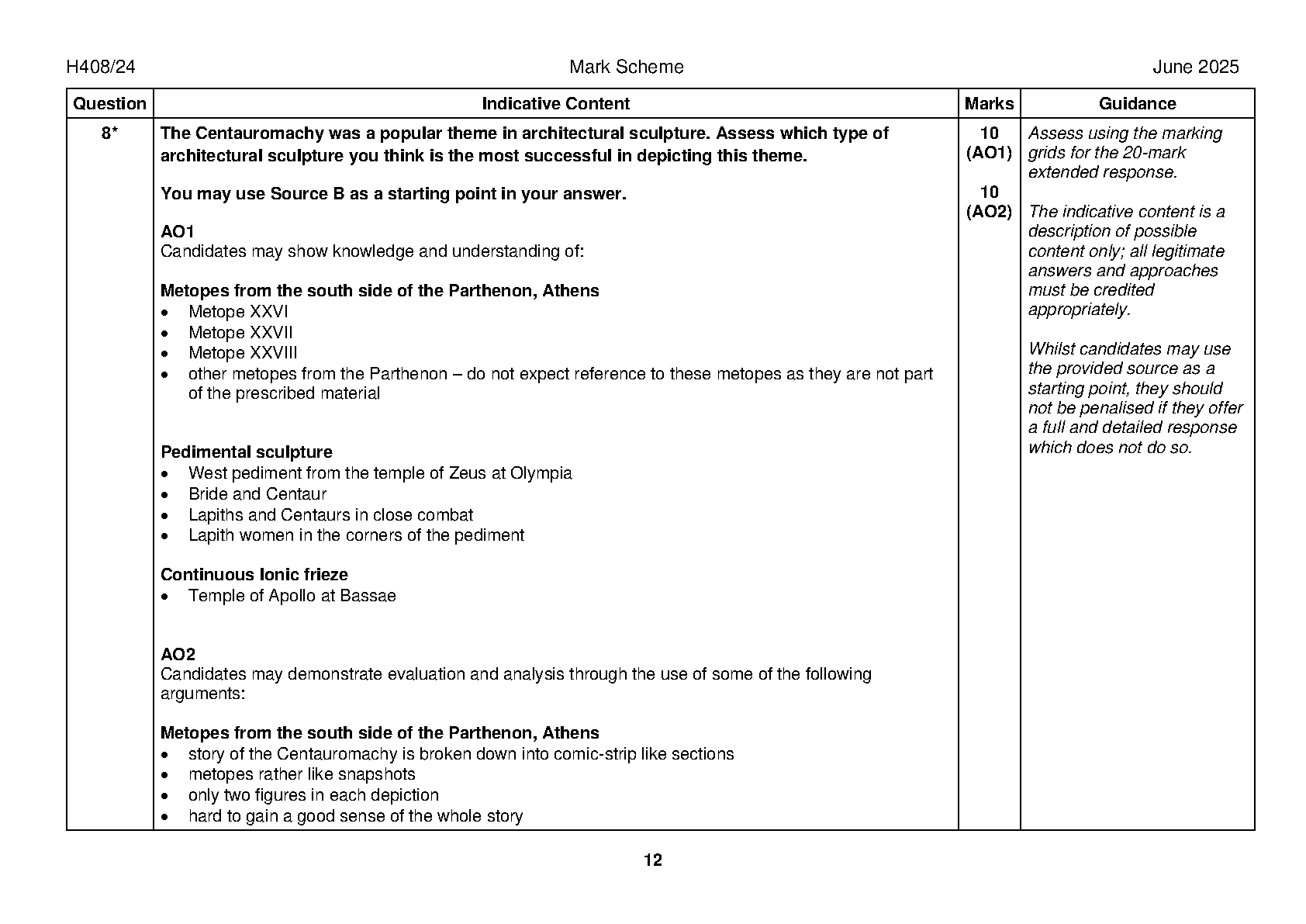 H408/24 (“Greek Art”) is one of the optional “Culture & the Arts” components of the A Level OCR A Level Classical Civilisation (course code H408).