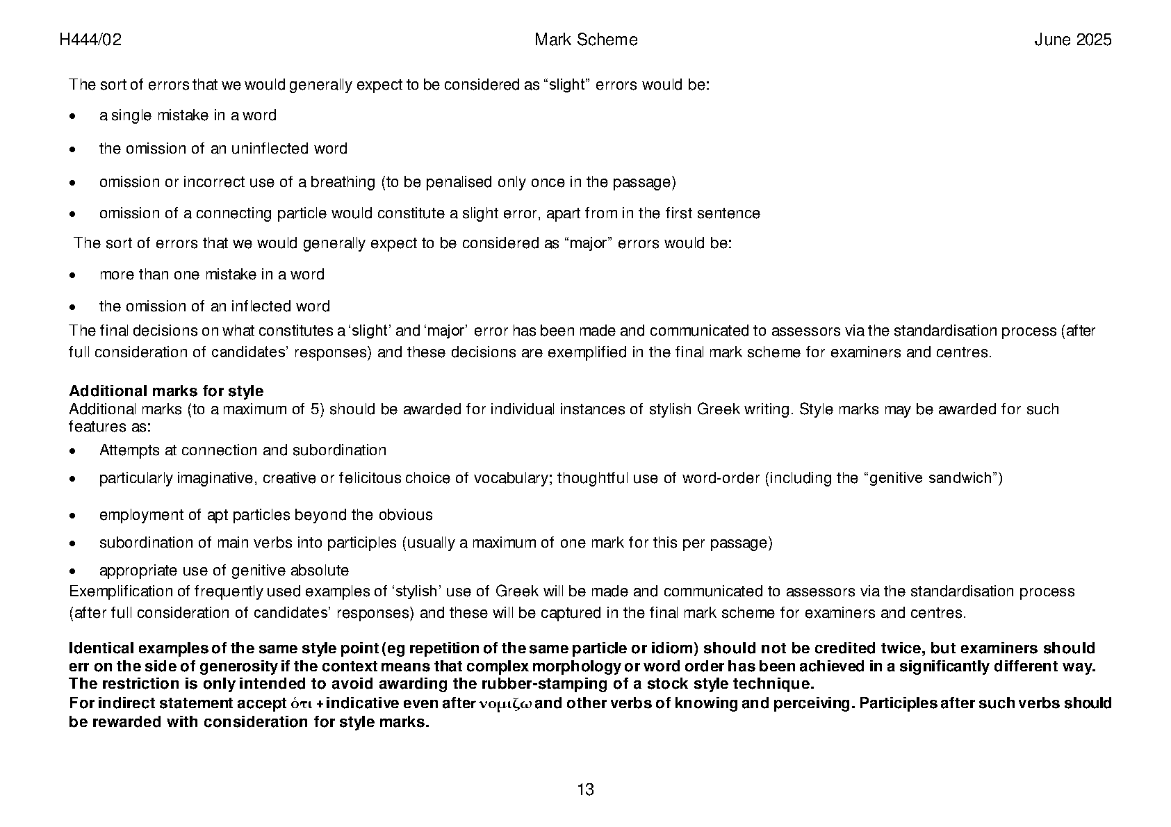 2025 OCR A Level Classical Greek Paper 2 and Mark Scheme Combined (H444/02 Prose Composition or Comprehension)