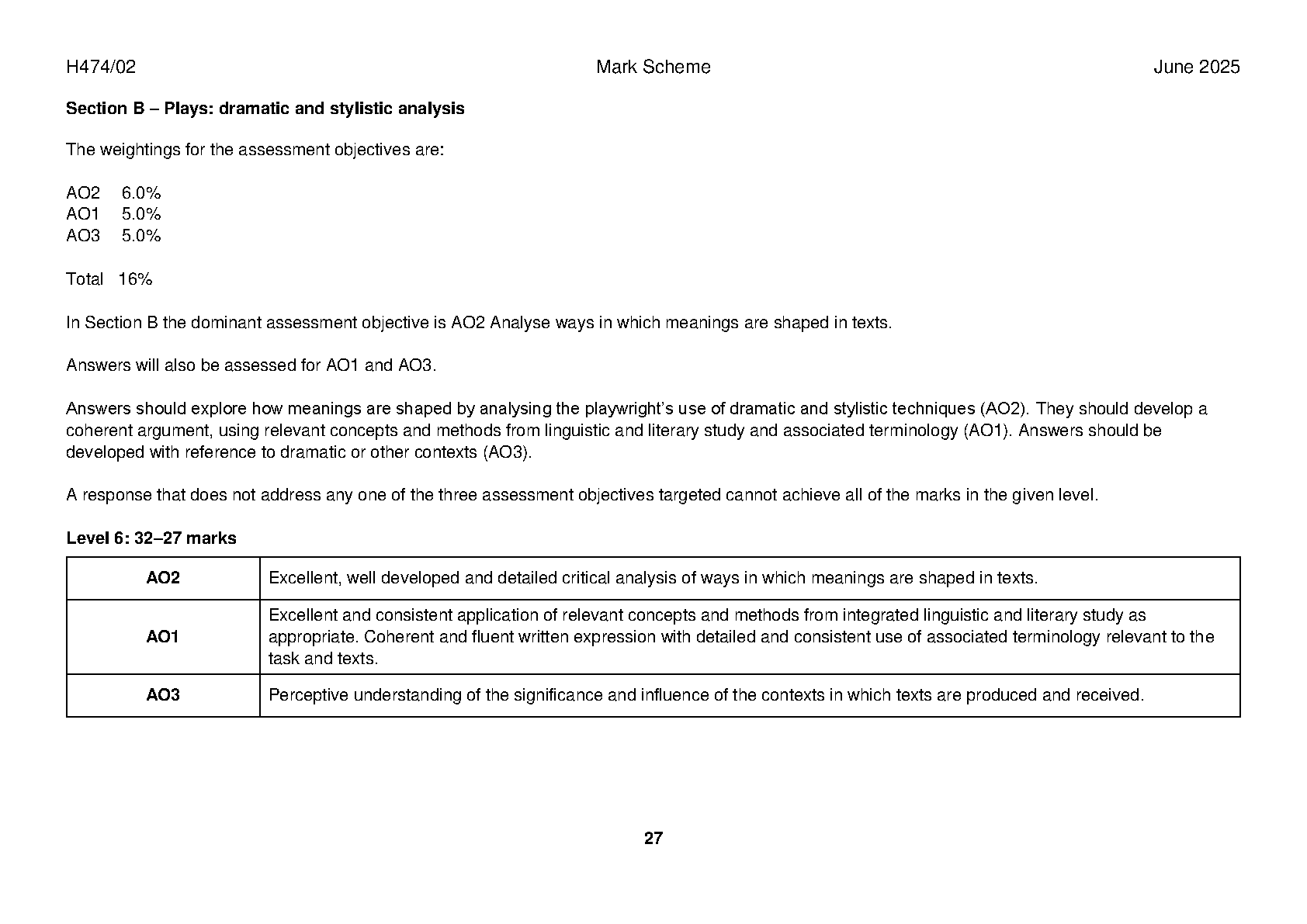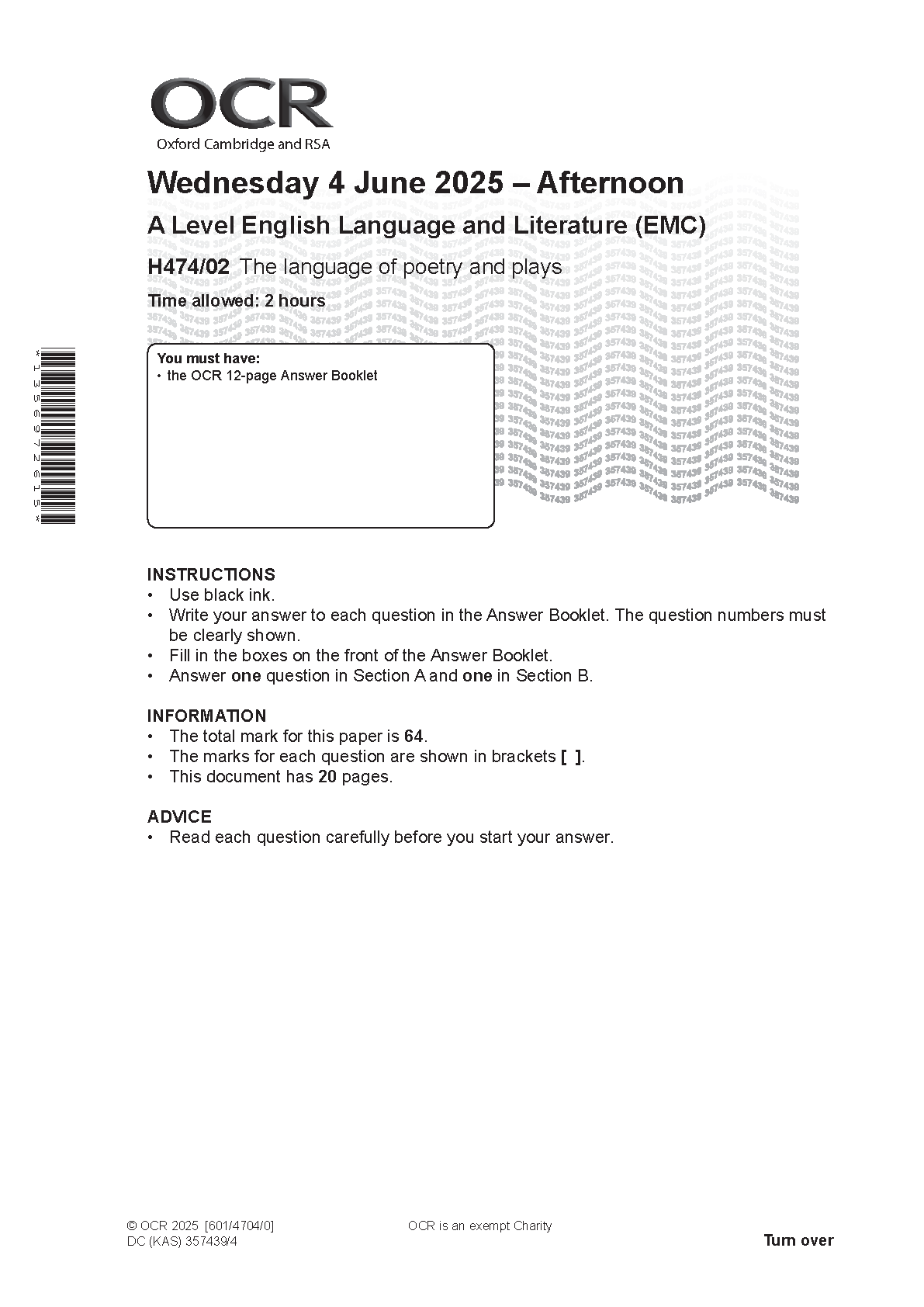 2025 OCR A Level English Language and Literature Paper 2 and Mark Scheme Combined (H474/02 The language of poetry and plays)