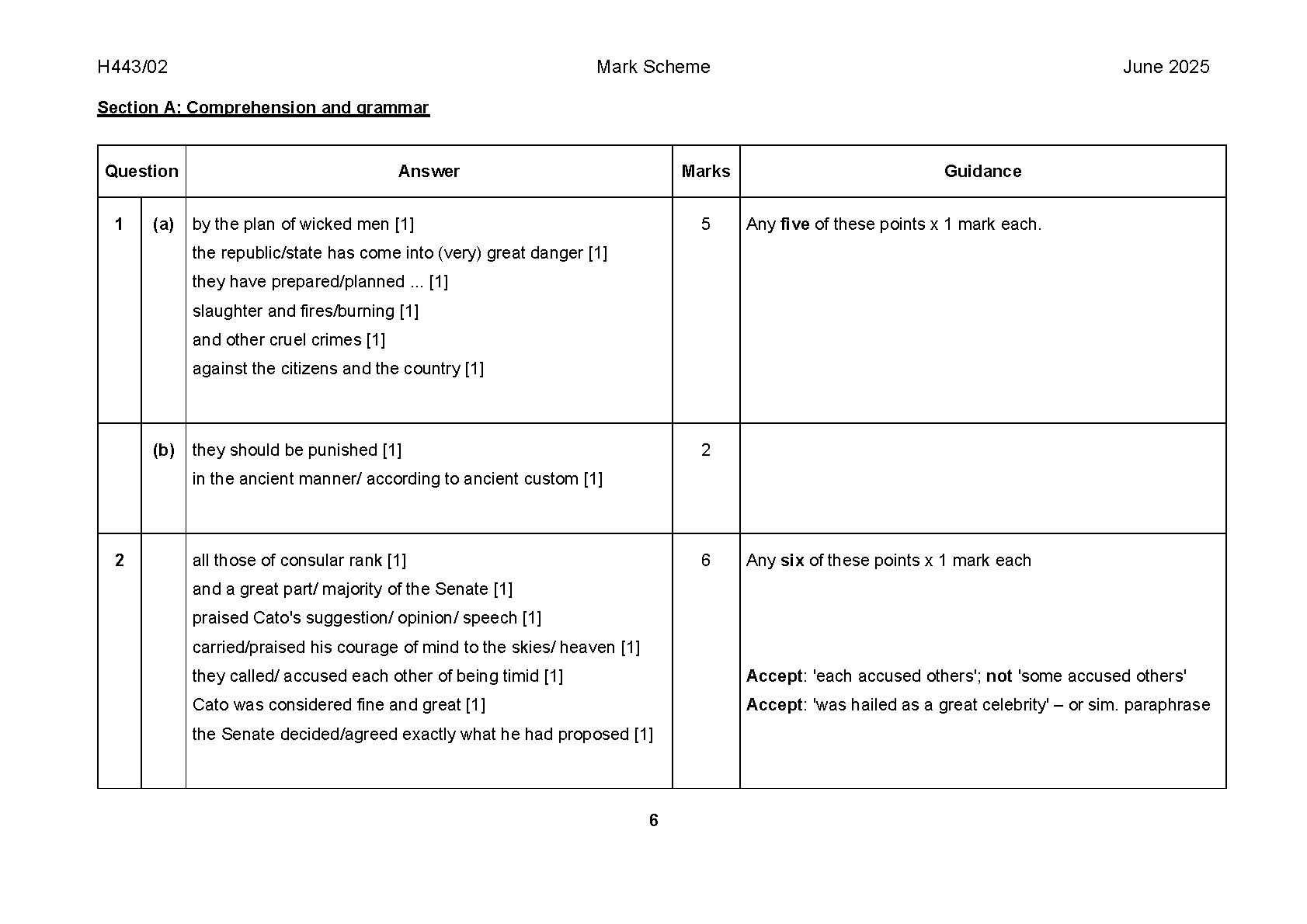 2025 OCR A Level Latin Paper 1 and Mark Scheme Combined (H443/01 Unseen Translation)
