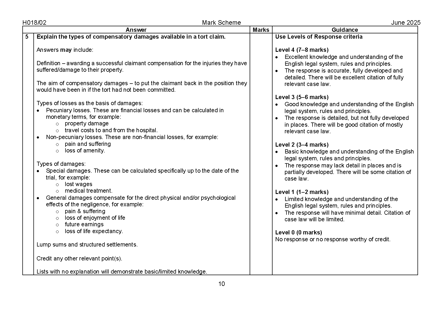 2025 OCR AS Level Law Paper 2 and Mark Scheme Combined (H018/02 Law making and the law of tort)