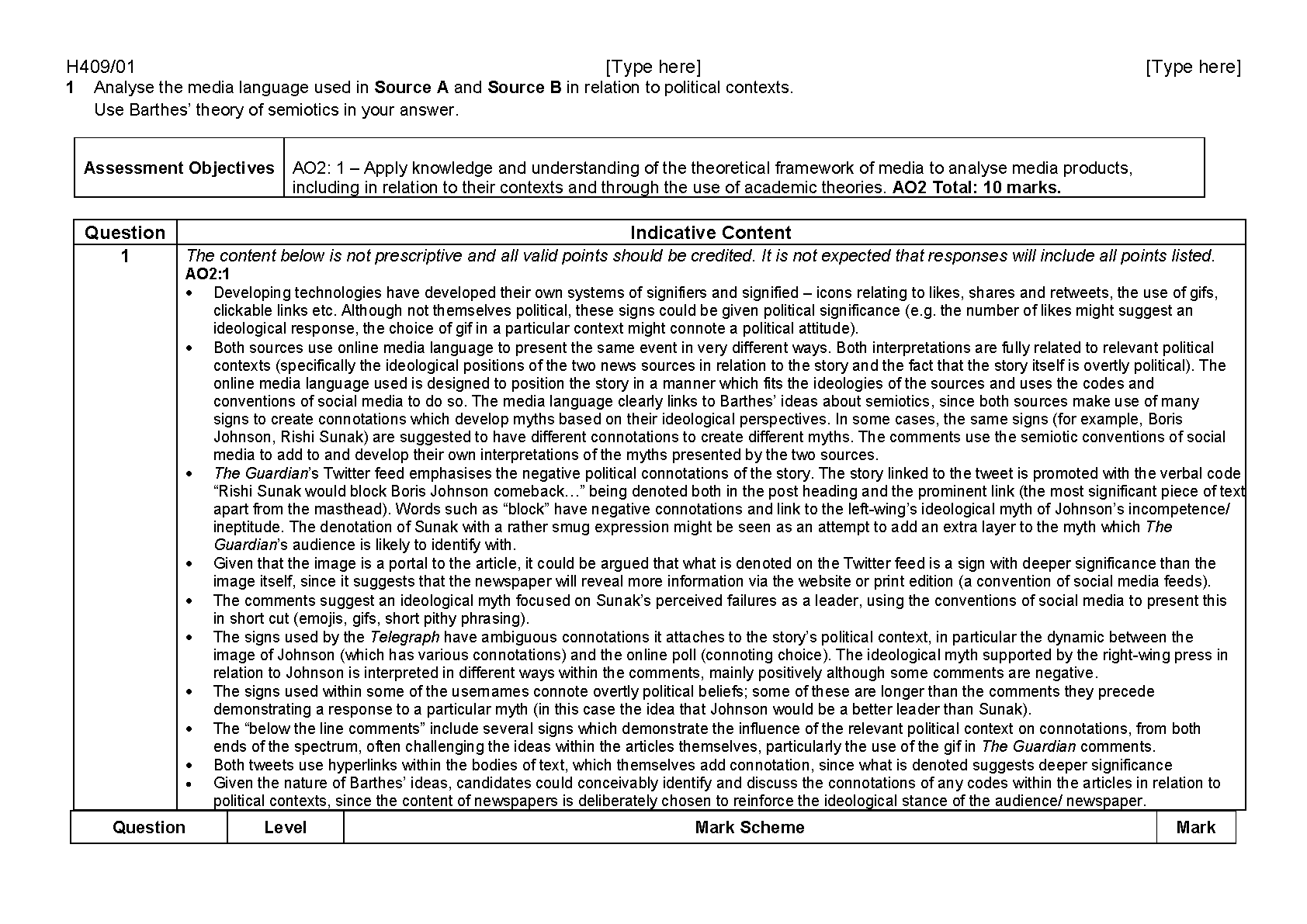 2025 OCR A Level Media Studies Paper 1 and Mark Scheme Combined (H409/01 Media messages)