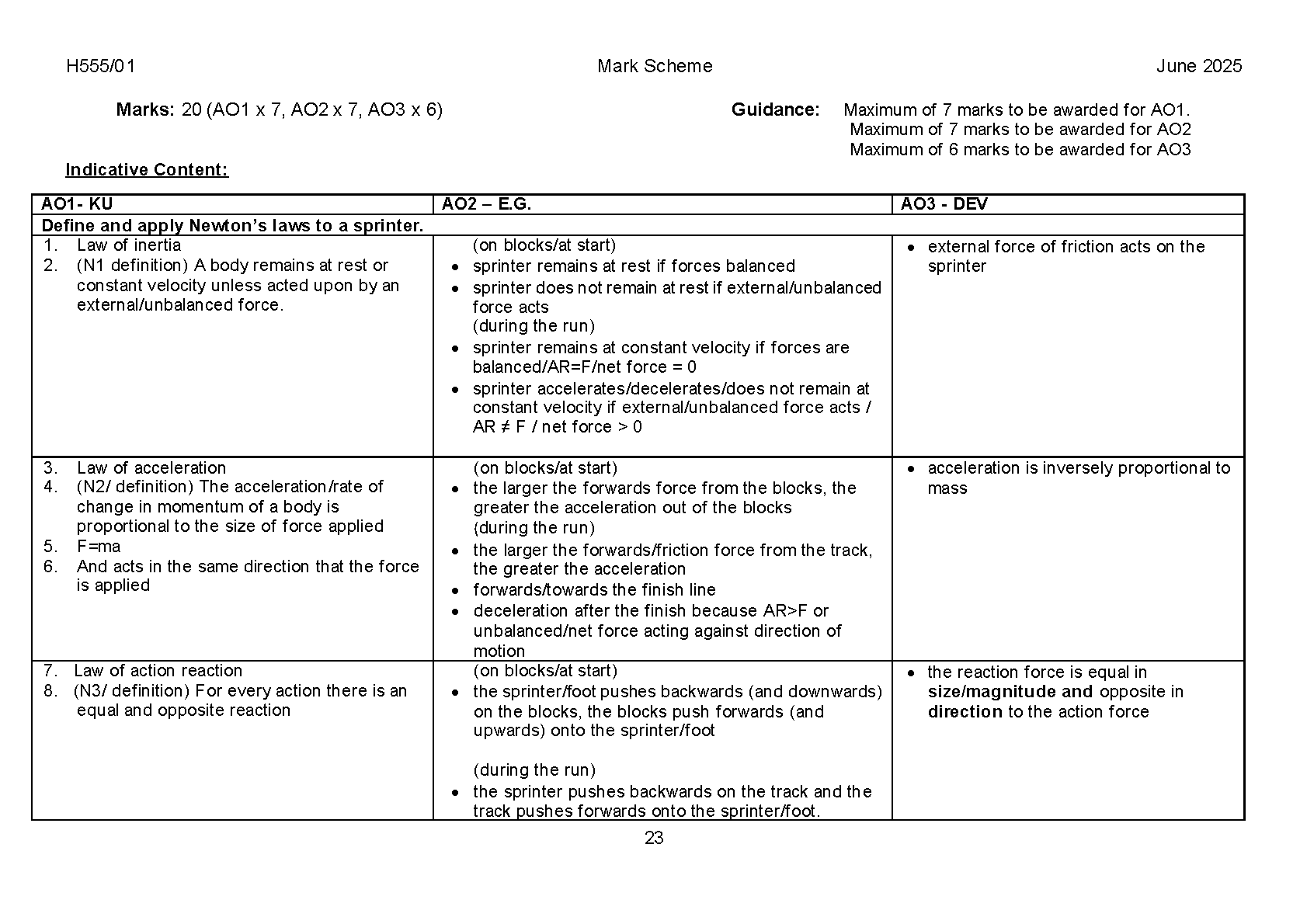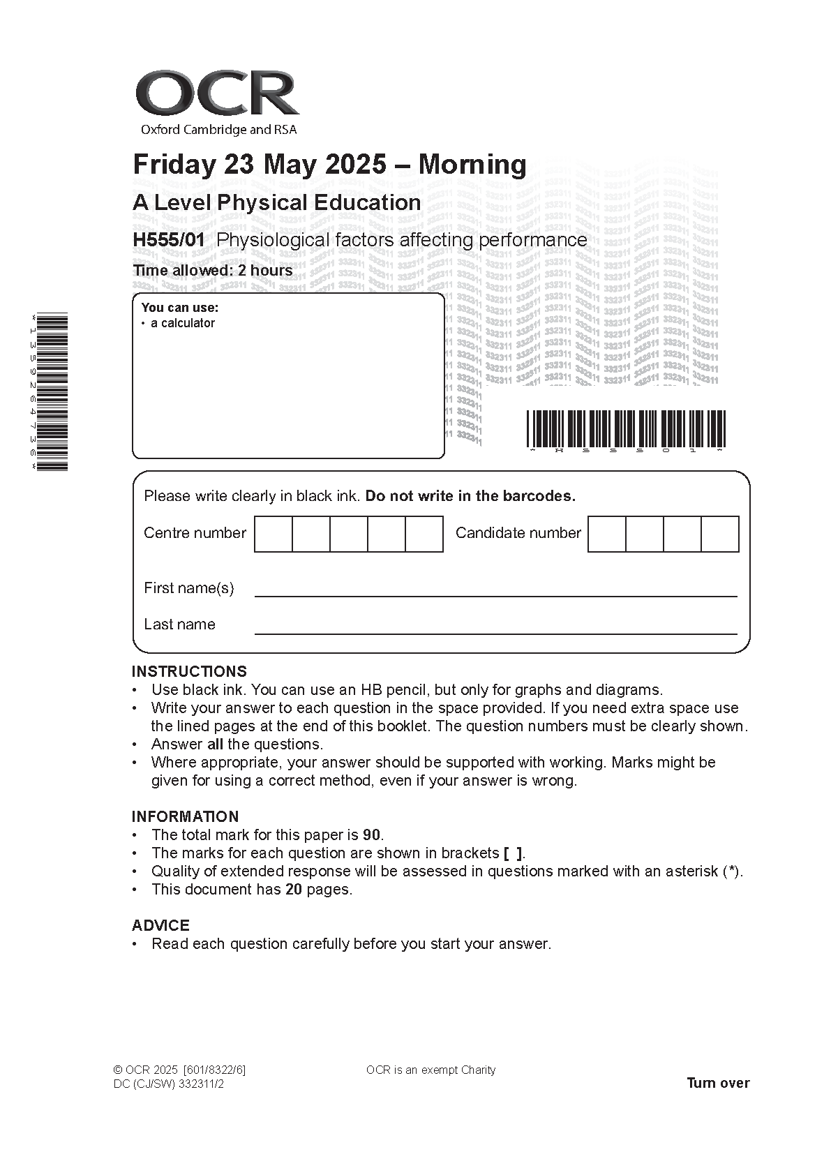 2025 OCR A Level Physical Education Paper 1 and Mark Scheme Combined (H555/01 Physiological factors affecting performance)