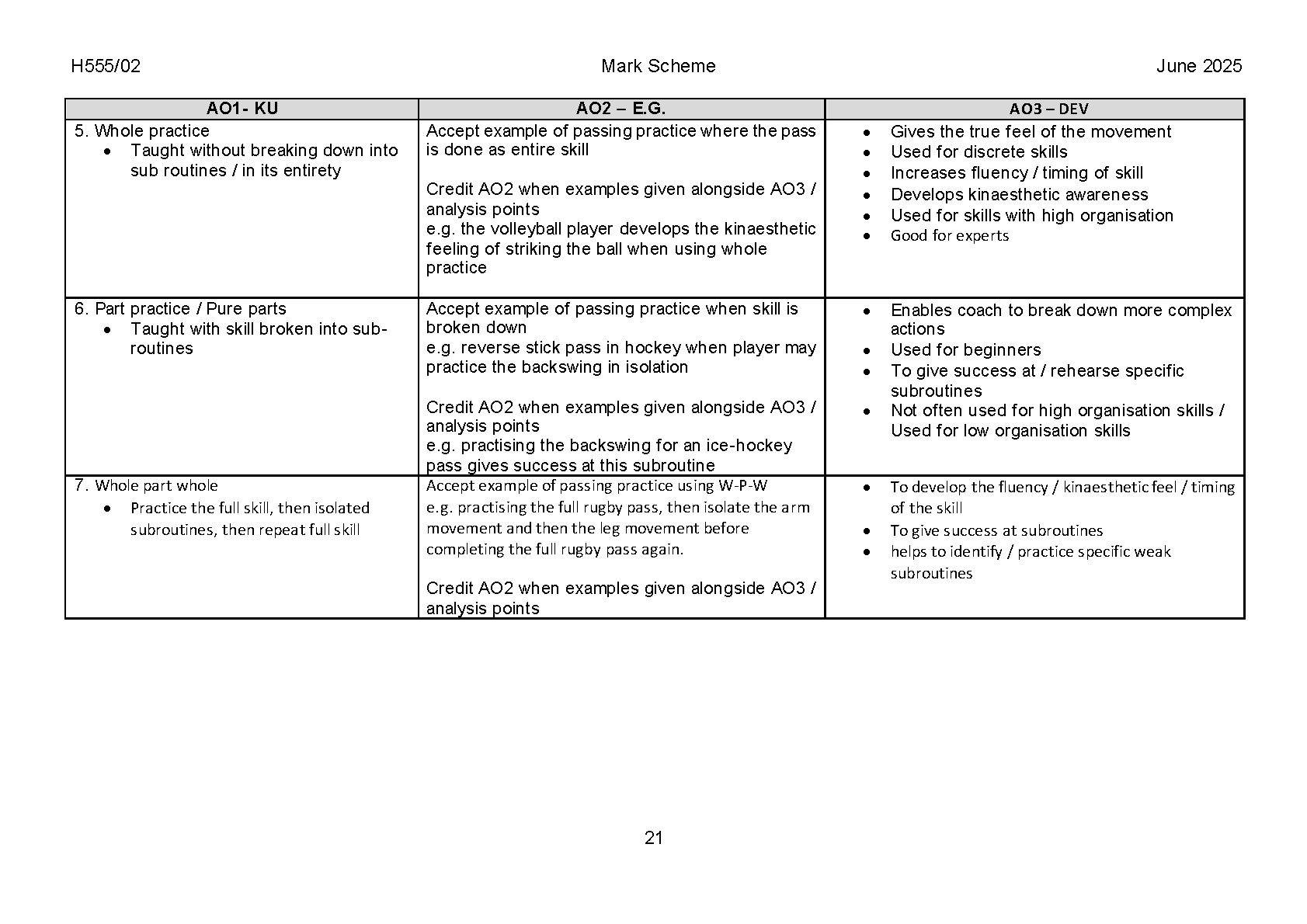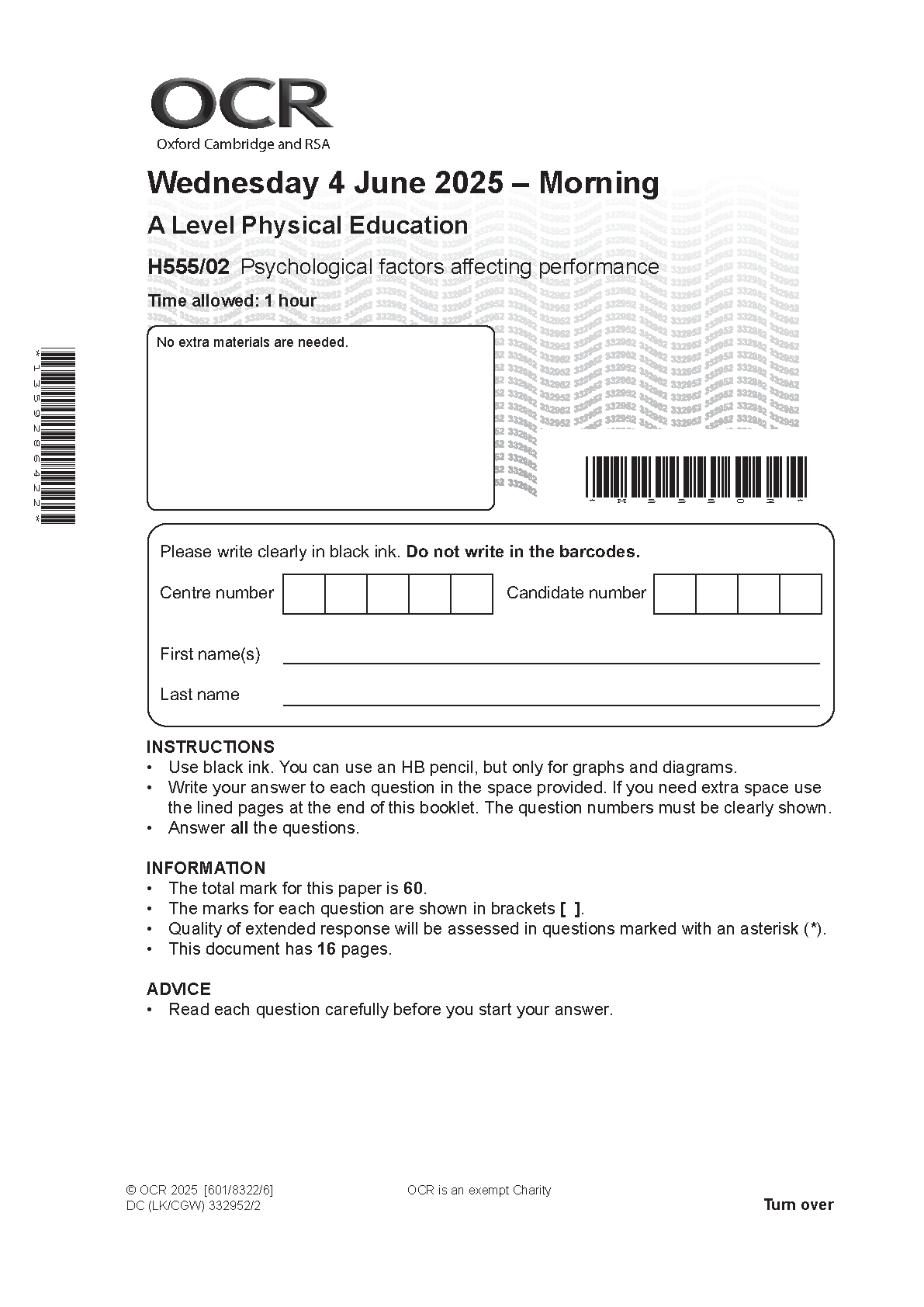2025 OCR A Level Physical Education Paper 2 and Mark Scheme Combined (H555/02 Psychological factors affecting performance
