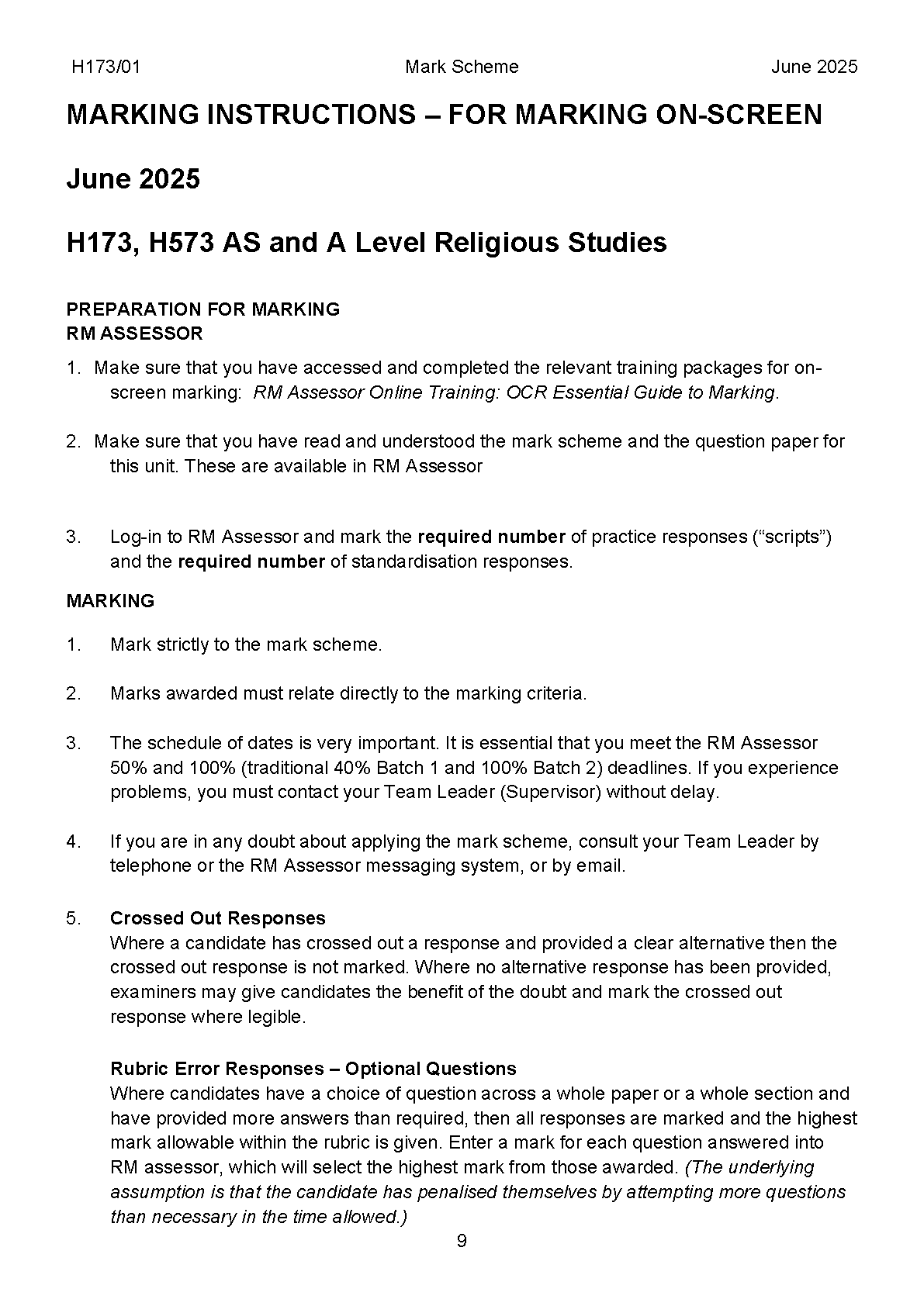 2025 OCR AS Level Religious Studies Paper 1 and Mark Scheme Combined (H173/01 Philosophy of Religion)