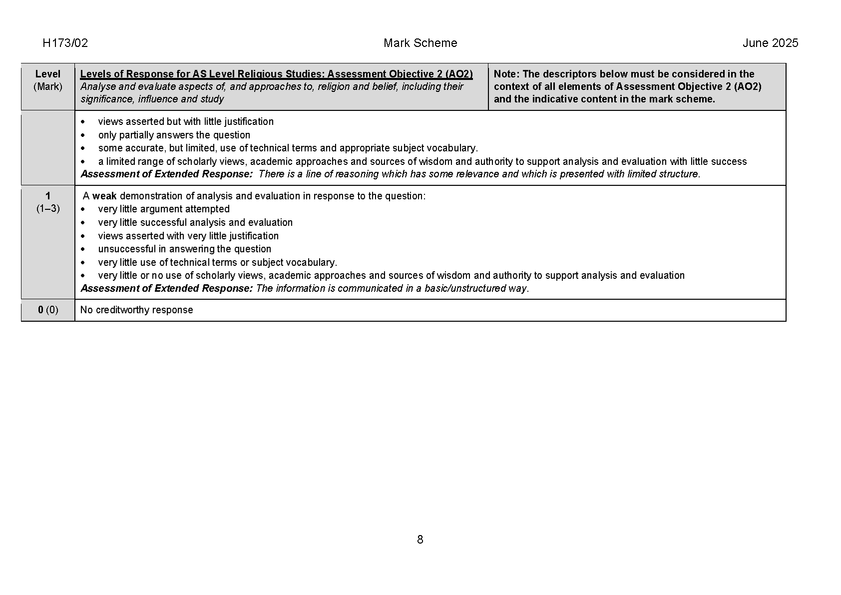 2025 OCR AS Level Religious Studies Paper 2 and Mark Scheme Combined (H173/02 Religion and ethics)