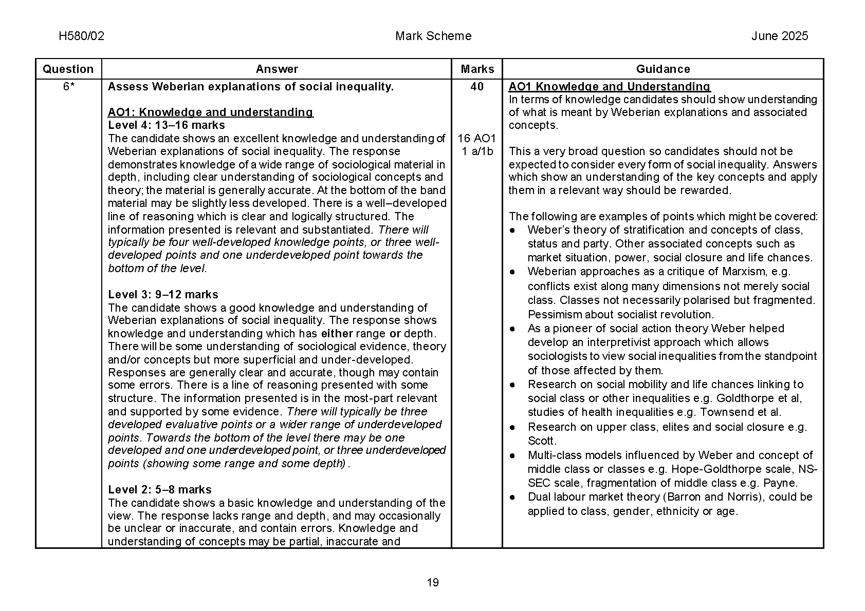 2025 OCR A Level Sociology Paper 2 and Mark Scheme Combined (H580/02 Researching and understanding social inequalities)