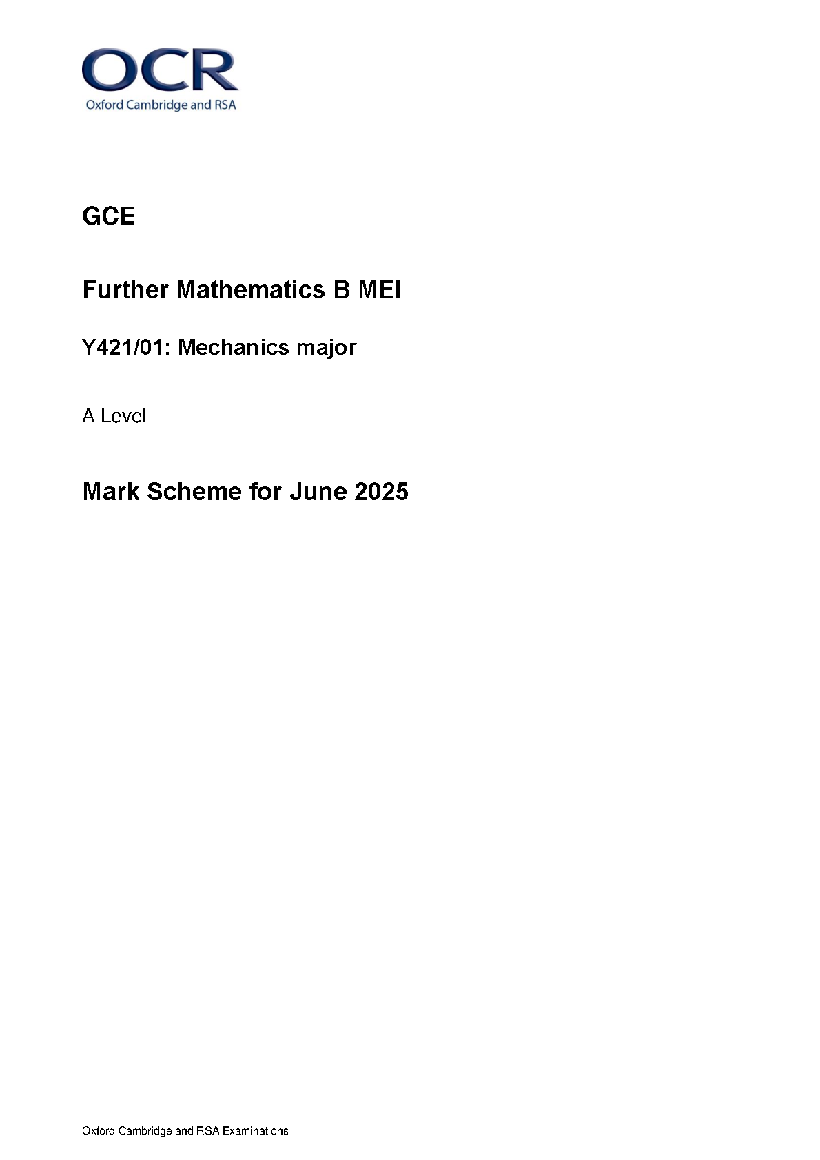 2025 OCR A Level Further Mathematics B (MEI) Paper 1 and Mark Scheme + Insert Combined (Y421/01 Mechanics Major)