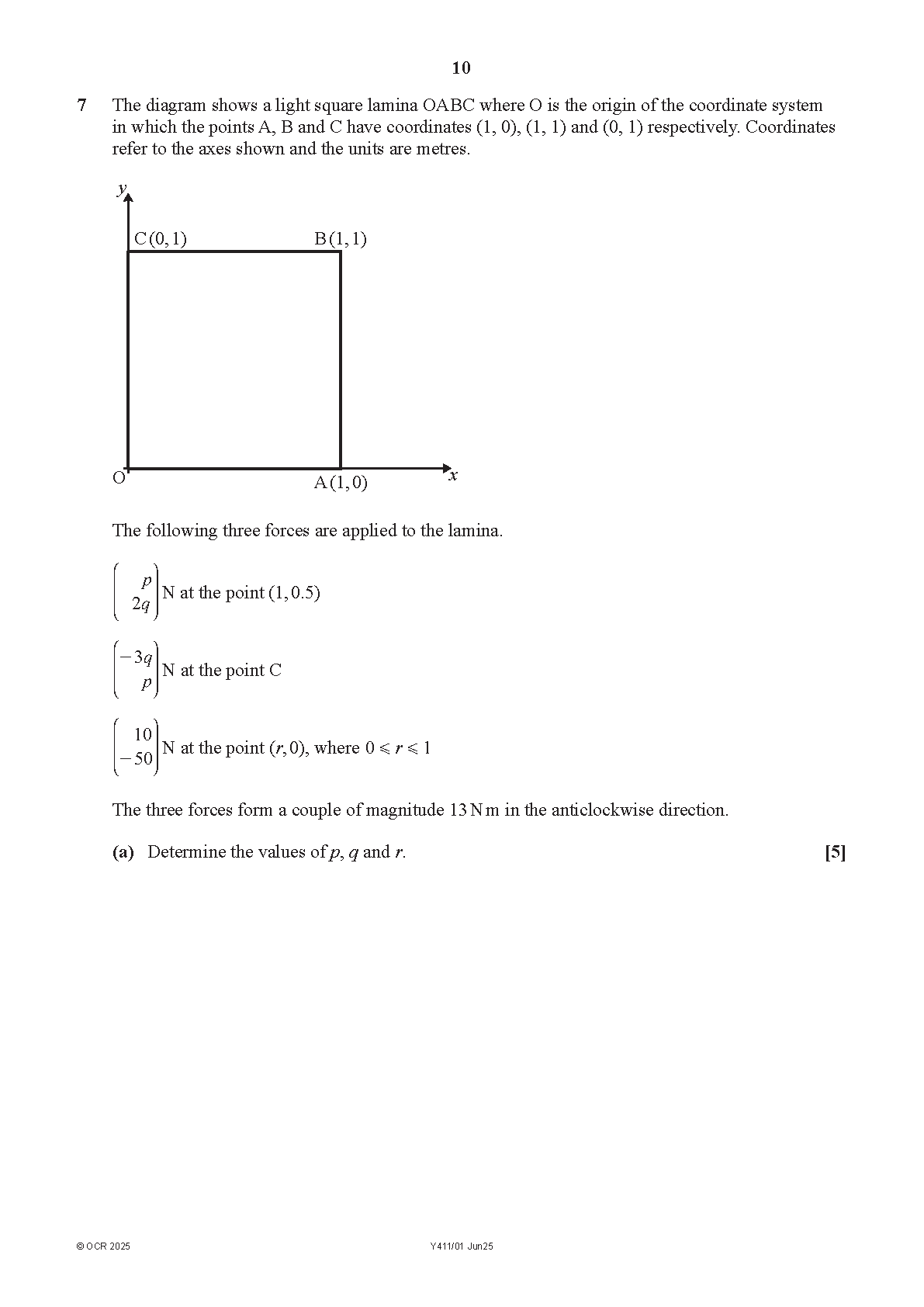 2025 OCR AS Level Further Mathematics B (MEI) Paper 1 and Mark Scheme + Insert Combined (Y411/01 Mechanics a )