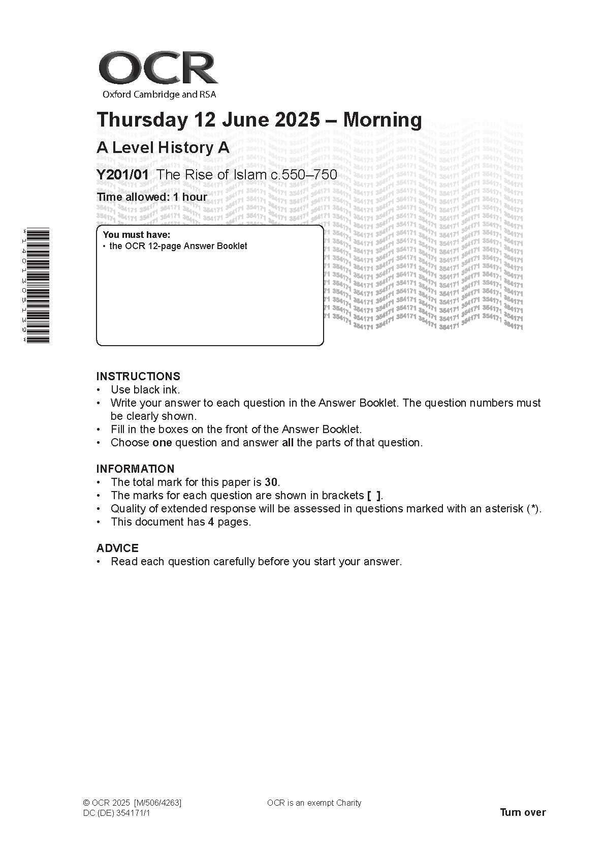2025 OCR A Level History A Paper 1 and Mark Scheme Combined (Y201/01 The Rise of Islam c.550–750)