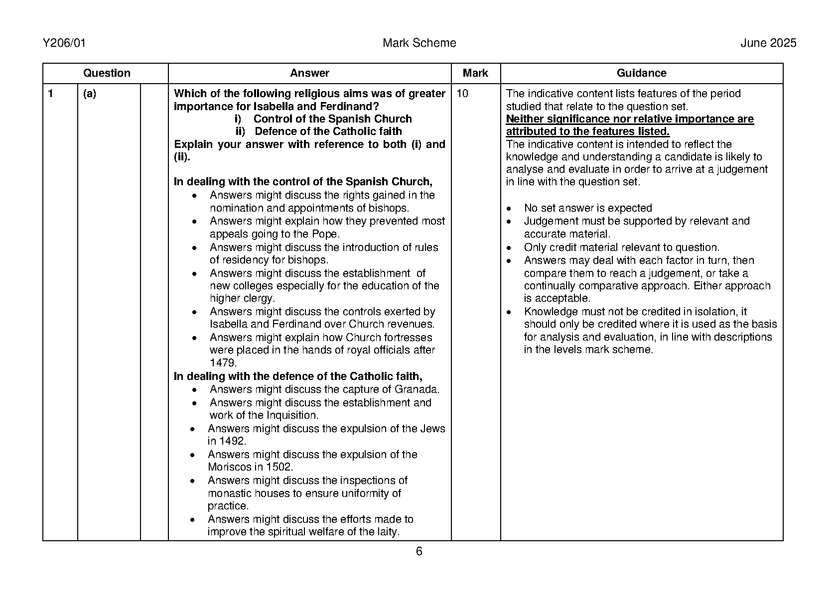 2025 OCR A Level History A Paper 1 and Mark Scheme Combined (Y206/01 Spain 1469–1556)