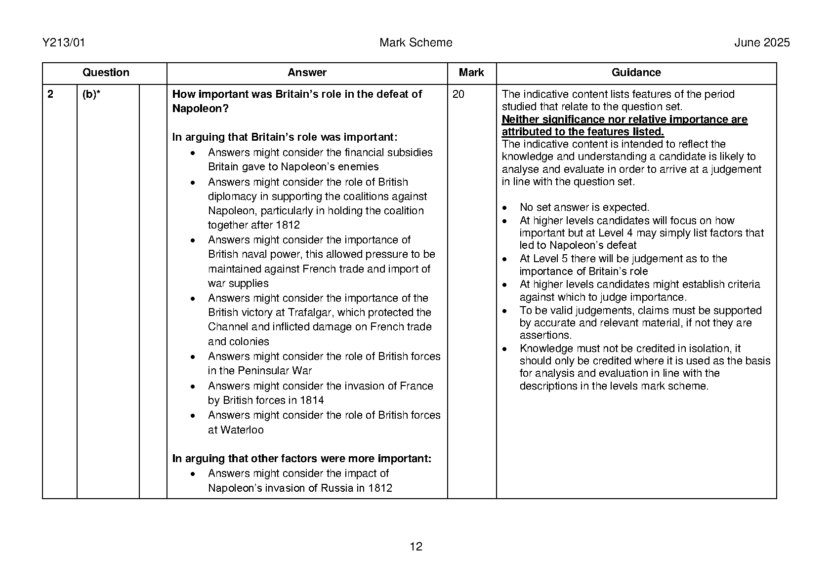 2025 OCR A Level History A Paper 1 and Mark Scheme Combined (Y213/01 The French Revolution and the rule of Napoleon 1774–1815)