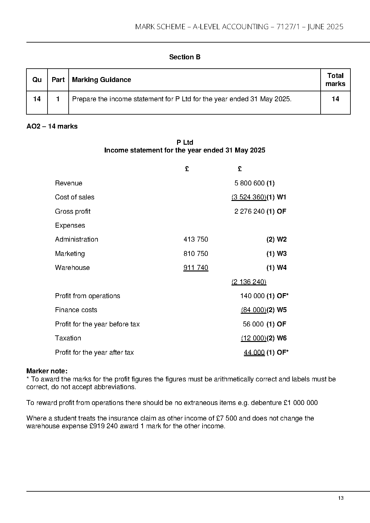 AQA A LEVEL ACCOUNTING PAPER 1 2025 MARK SCHEME