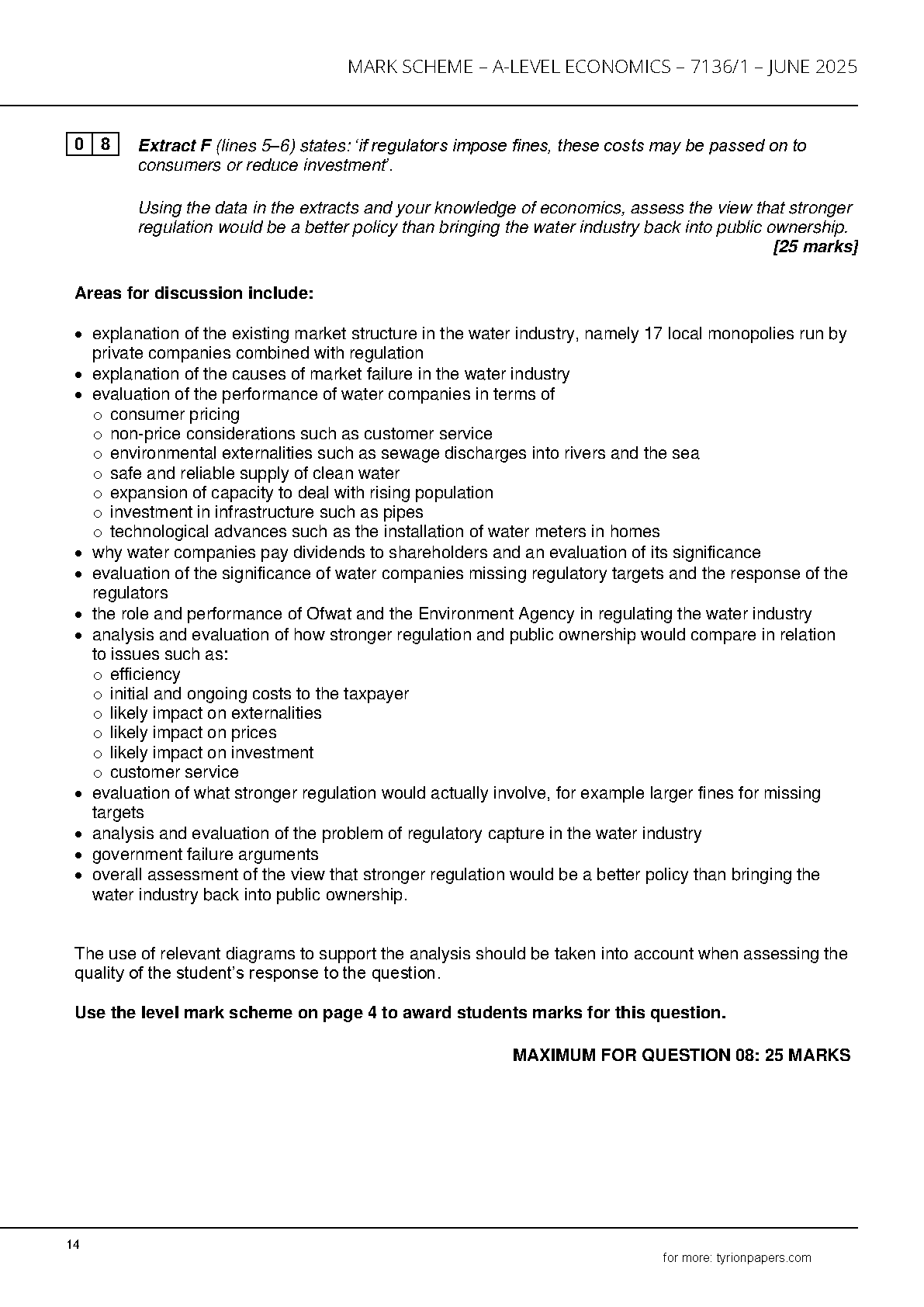 AQA A LEVEL ECONOMICS PAPER 1 2025 MARK SCHEME