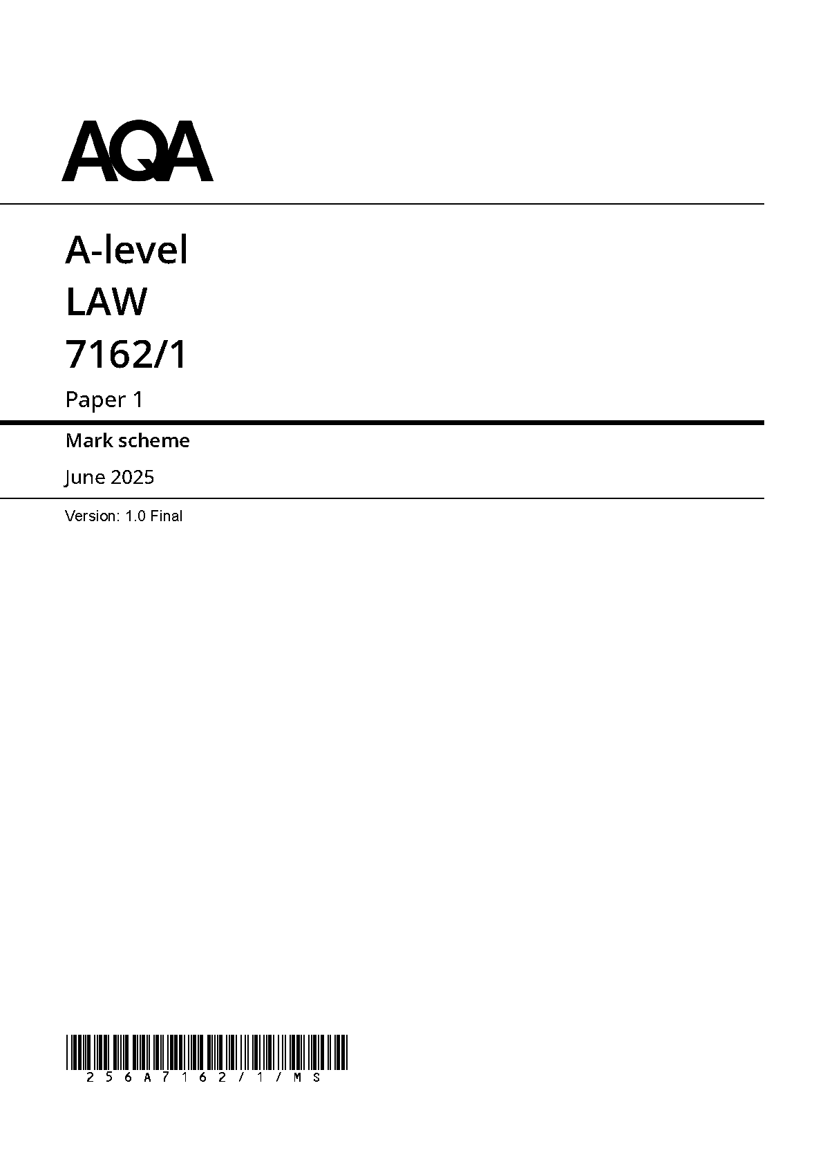 AQA A LEVEL LAW PAPER 1 2025 MARK SCHEME (7162/1)