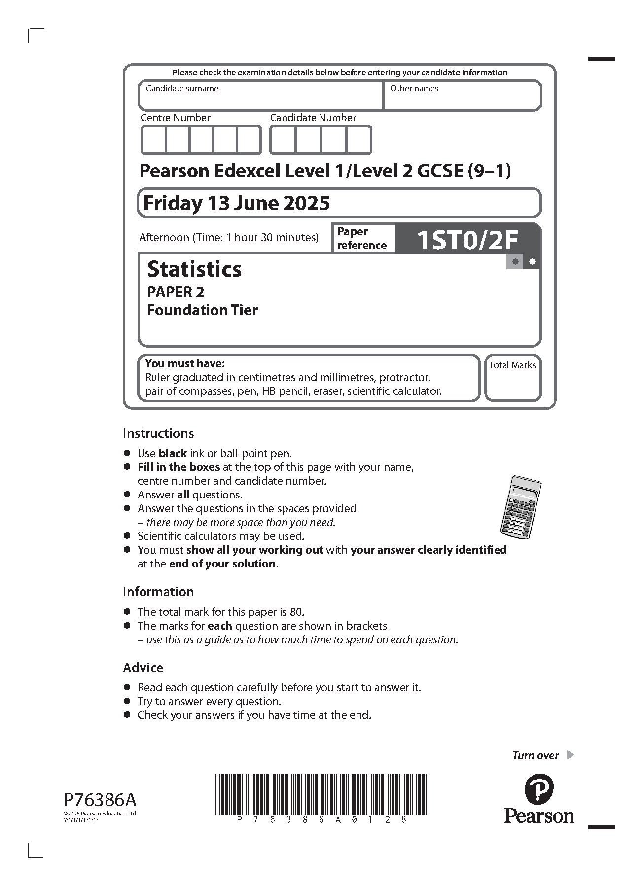 2025 Pearson Edexcel GCSE Statistics Paper 2F and Mark Scheme Combined (1ST0/2F: Foundation Tier)