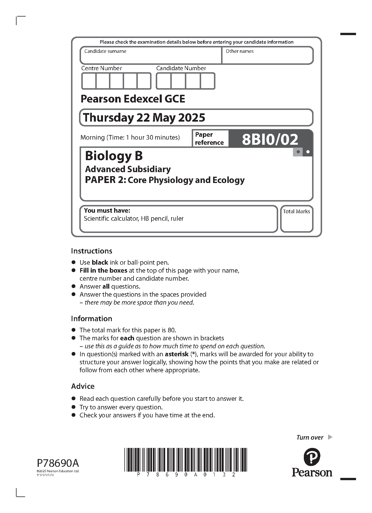 2025 Pearson Edexcel AS Level Biology B PAPER 2 and Mark Scheme Combined (8BI0/02:Core Physiology and Ecology)