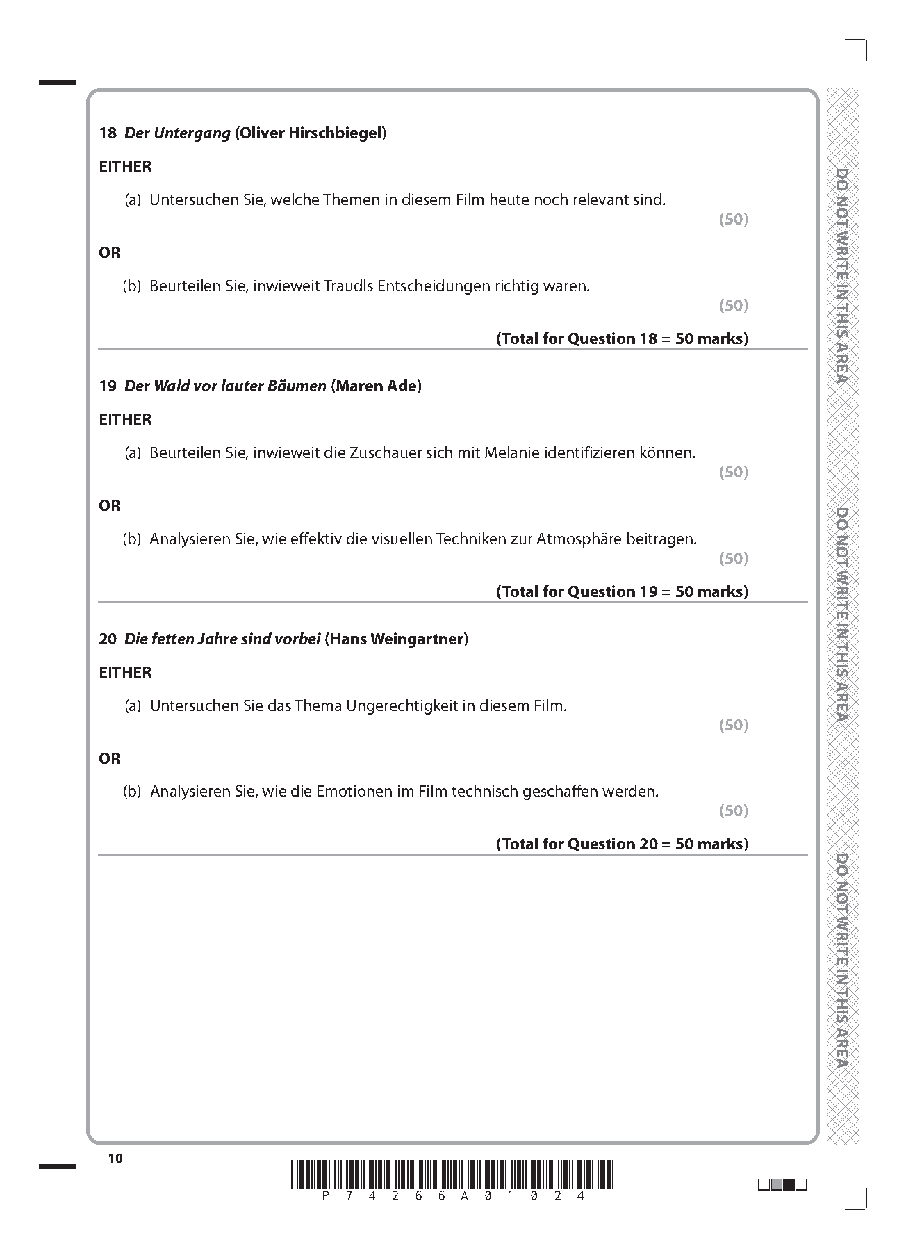 2025 Pearson Edexcel A Level German Paper 2 and Mark Scheme Combined (9GN0/02: Written response to works and translation)
