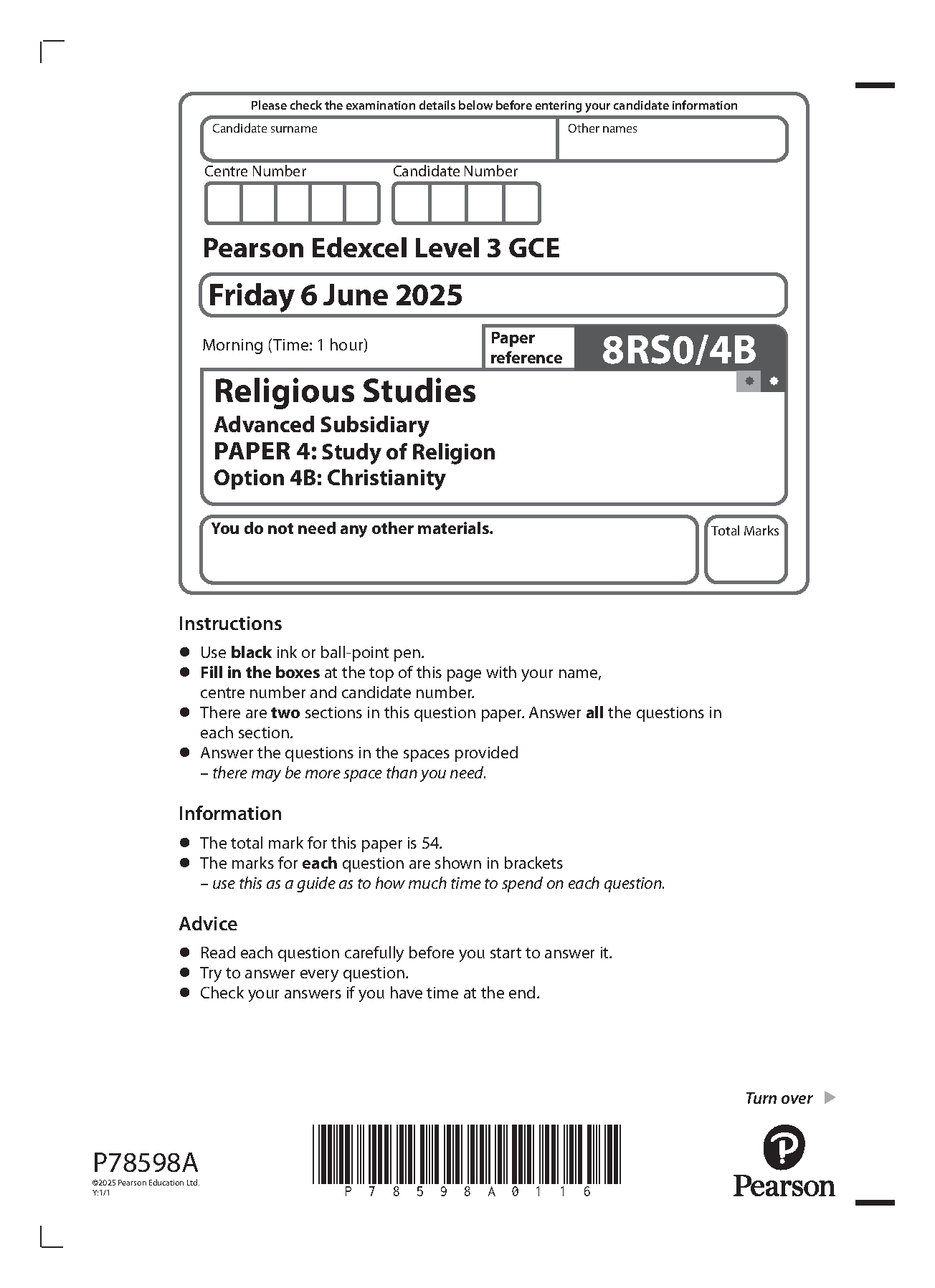 2025 Pearson Edexcel AS Level Religious Studies Paper 4 and Mark Scheme Combined (8RS0/4A: Buddhism)