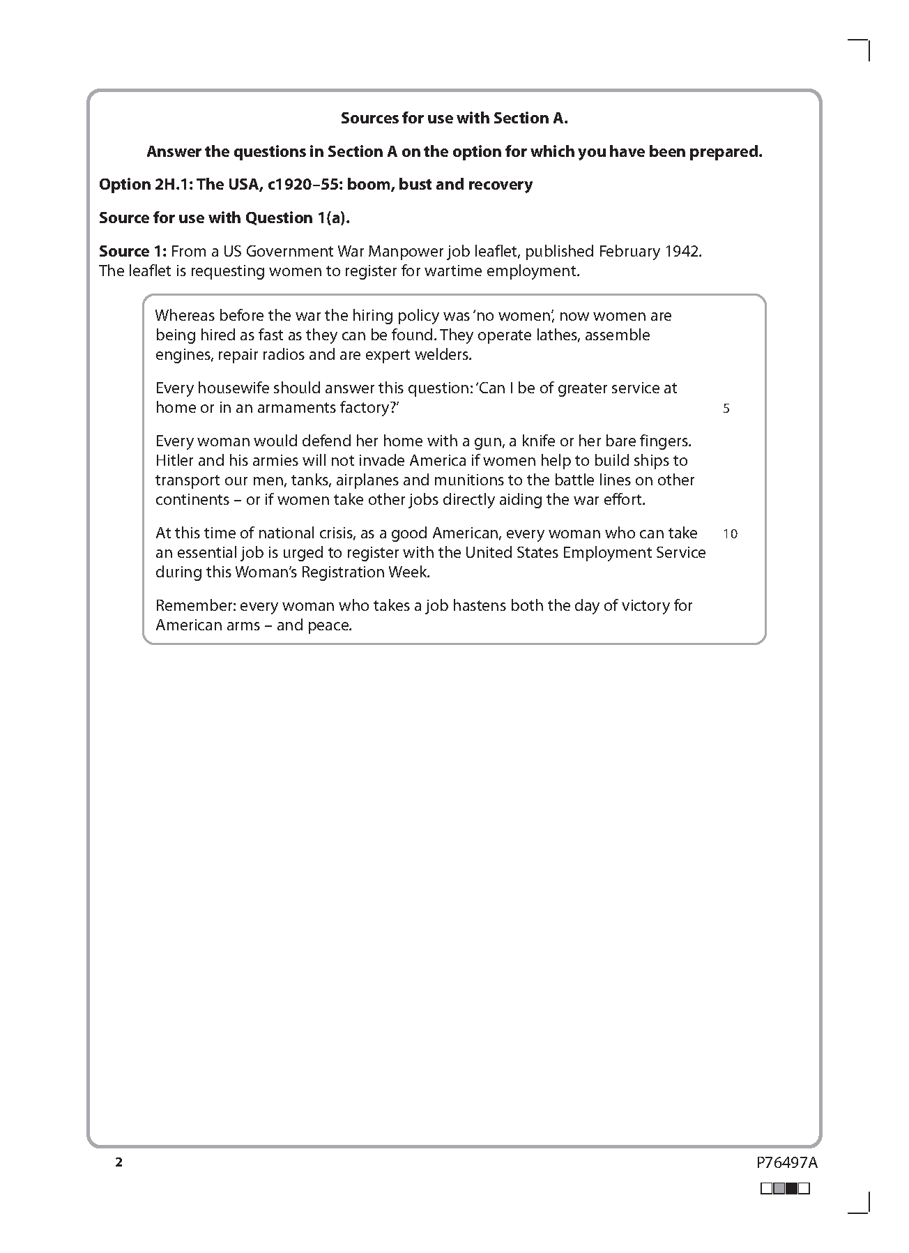 2025 Pearson Edexcel AS Level History Paper 2H and Mark Scheme Combined (8HI0/2H: The USA, c1920–55: boom, bust and recovery)