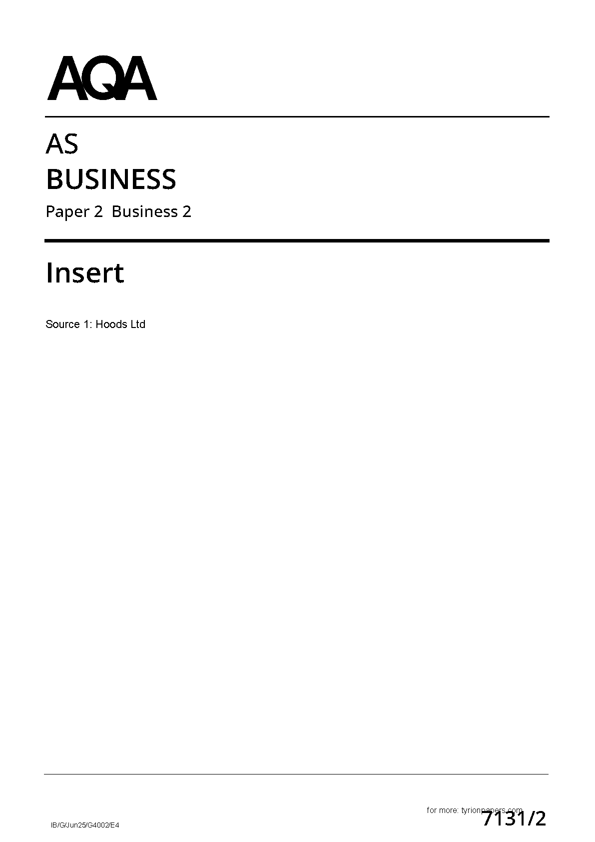 AQA AS BUSINESS PAPER 1 2025 INSERT (7131/1). DOWNLOAD this verified paper on www.leakedexams and access the PDF INSTANTLY!!!