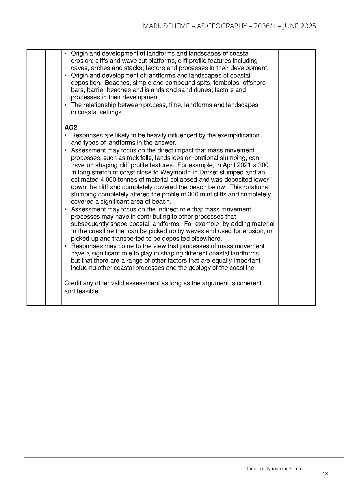 AQA AS GEOGRAPHY PAPER 1 2025 MARK SCHEME (7036/1:  Physical geography and people and the environment). DOWNLOAD this verified paper on www.leakedexams.com and access the PDF INSTANTLY!!!