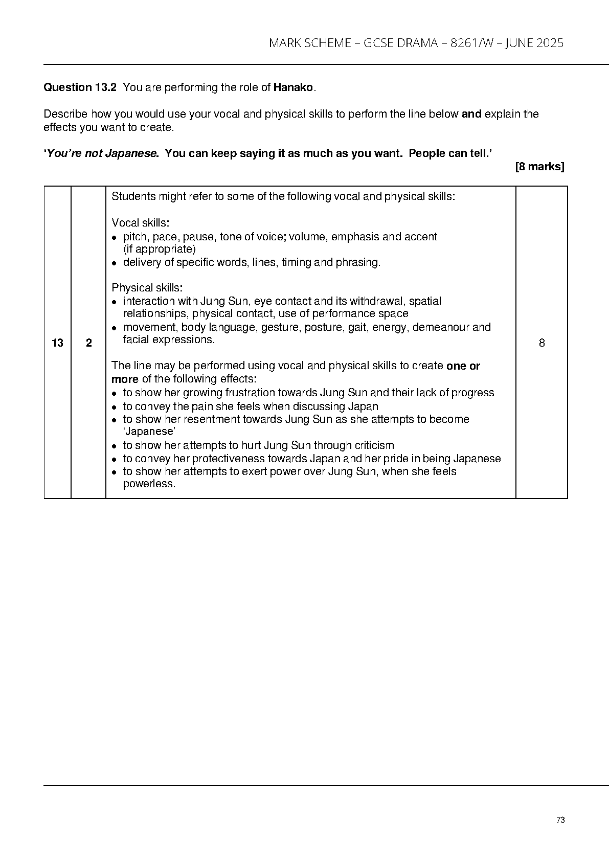 AQA GCSE DRAMA PAPER 1 2025 MARK SCHEME (8261/W)