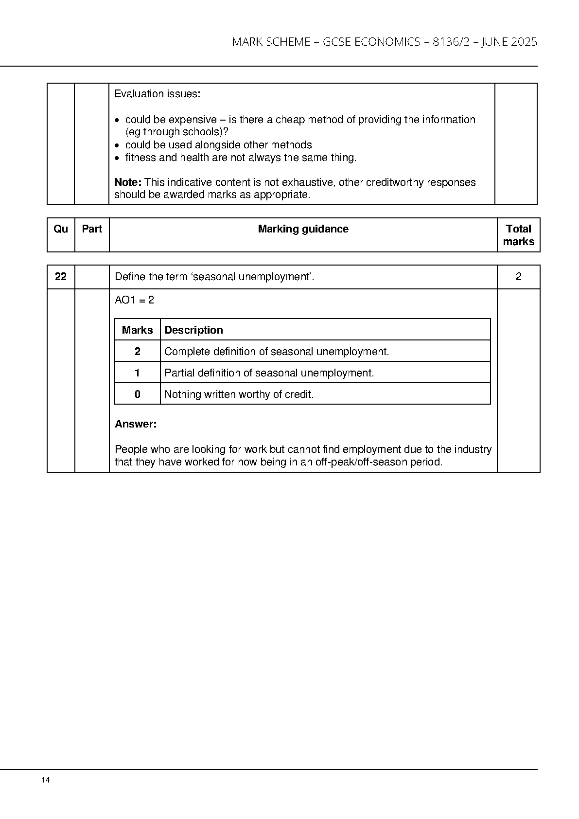 AQA GCSE ECONOMICS PAPER 2 2025 MARK SCHEME