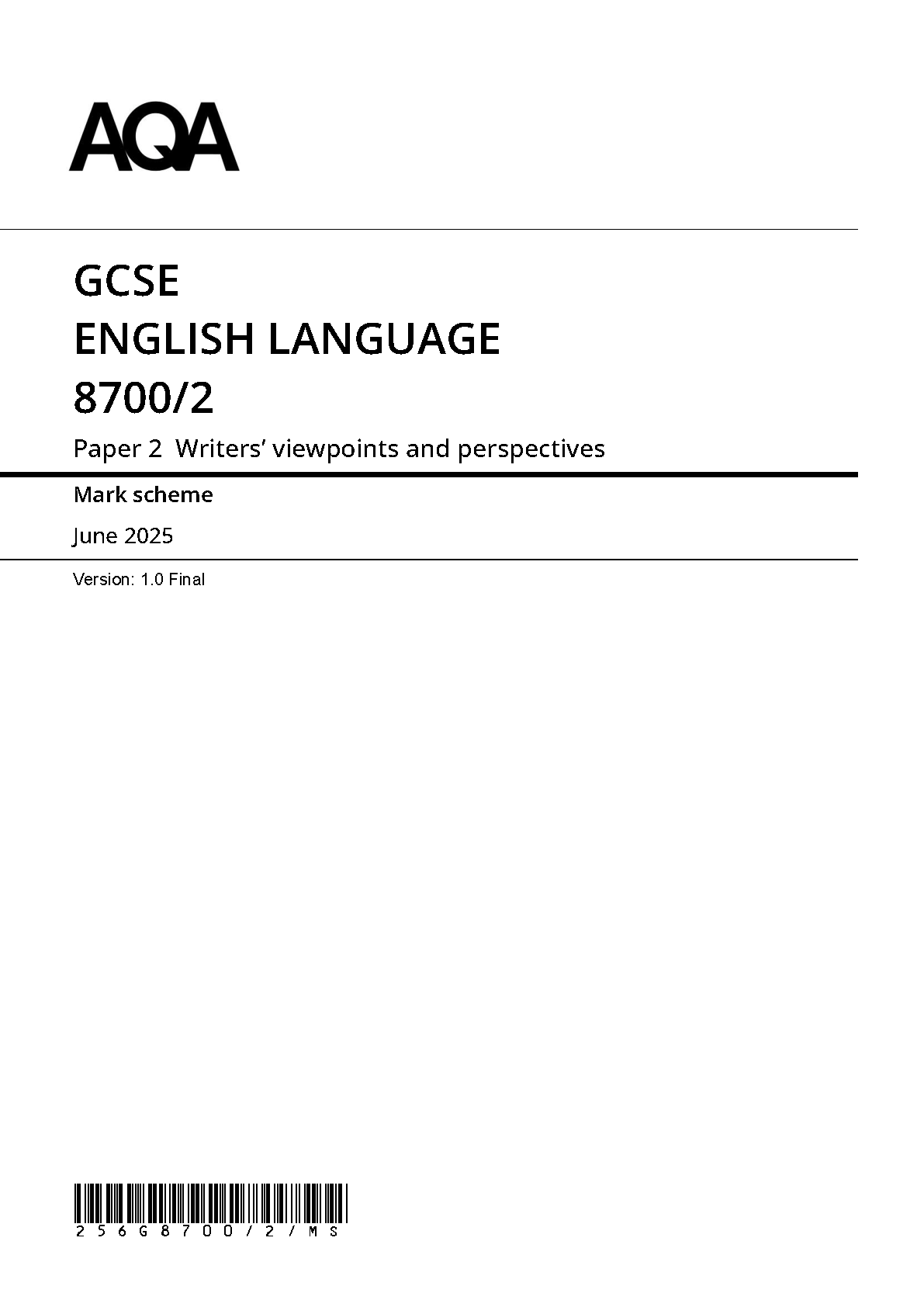 AQA GCSE ENGLISH LANGUAGE PAPER 2 2025 MARK SCHEME (8700/2)