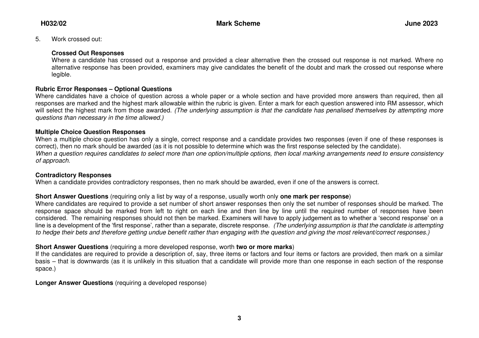 OCR AS LEVEL CHEMISTRY A PAPER 2 MARK SCHEME 2023 (H032/02: Depth in chemistry)