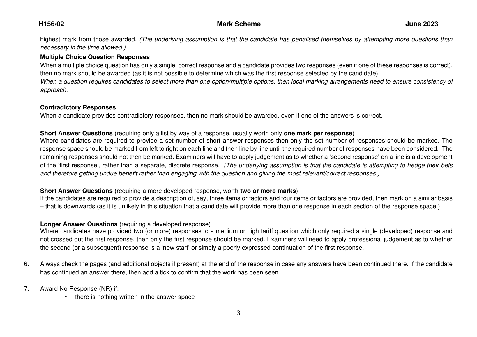 OCR AS LEVEL PHYSICS A PAPER 2 MARK SCHEME 2023 (H156/02: Depth in physics).