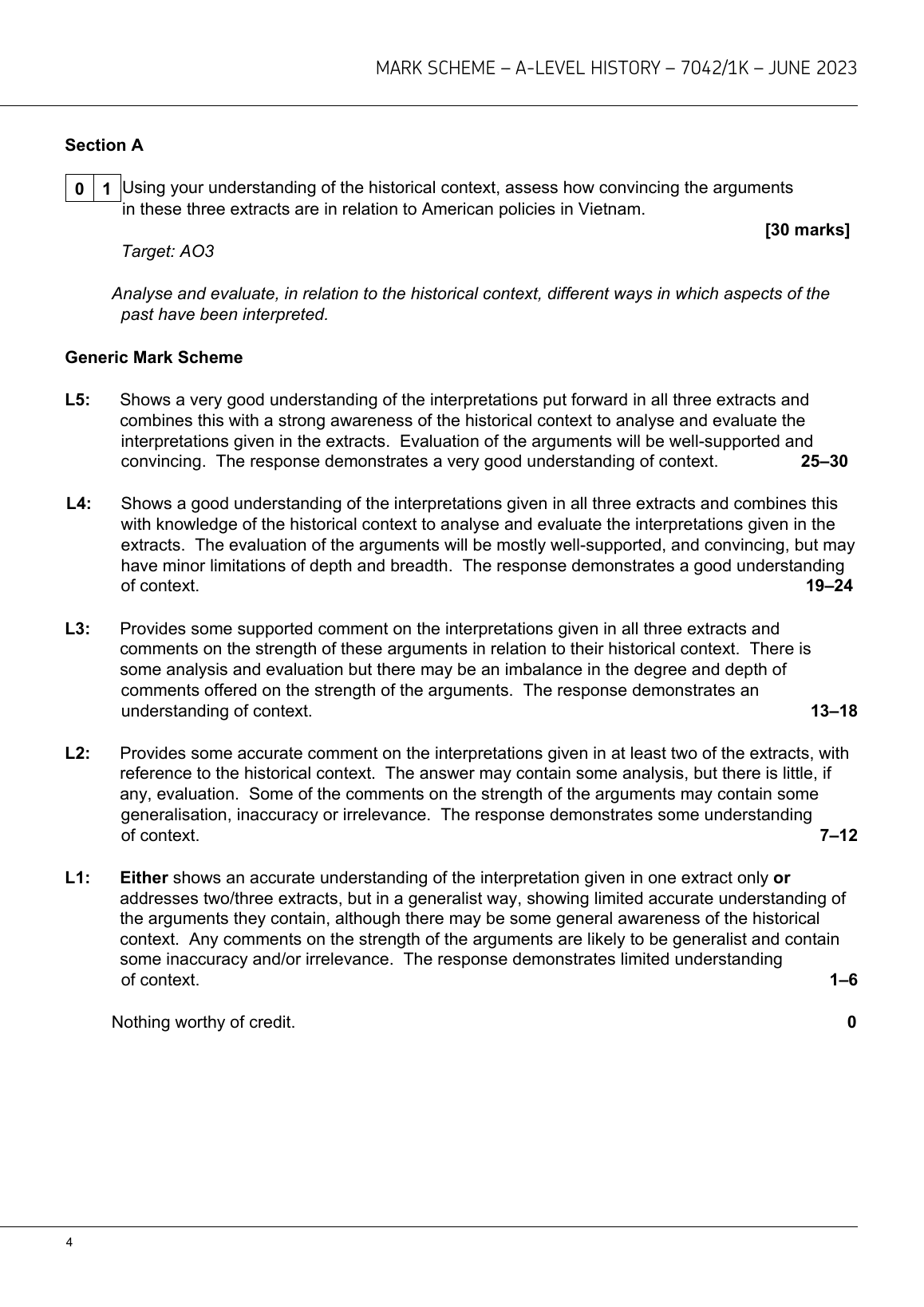 AQA A LEVEL HISTORY PAPER 1 MARK SCHEME 2023 (7042/1K: The making of a Superpower: USA, 1865–1975). DOWNLOAD OFFICIAL AND VERIFIED AQA A LEVEL HISTORY PAPER 1 MARK SCHEME 2023 ON www.leakedexams.com.