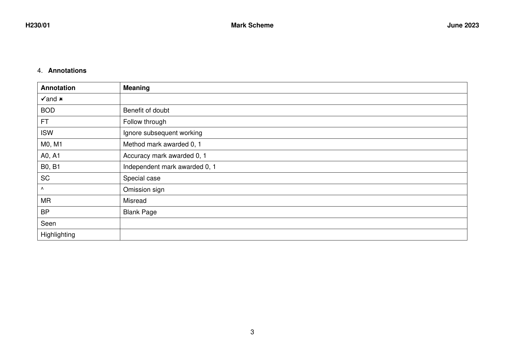 OCR AS LEVEL MATHEMATICS A PAPER 1 MARK SCHEME 2023 (H230/01: Pure Mathematics and Statistics)