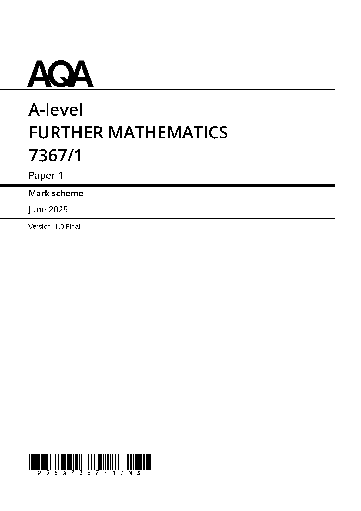 aqa a level further mathematics paper 1 2025 mark scheme (7367/1). download this verified paper on www.leakedexams.com a...
