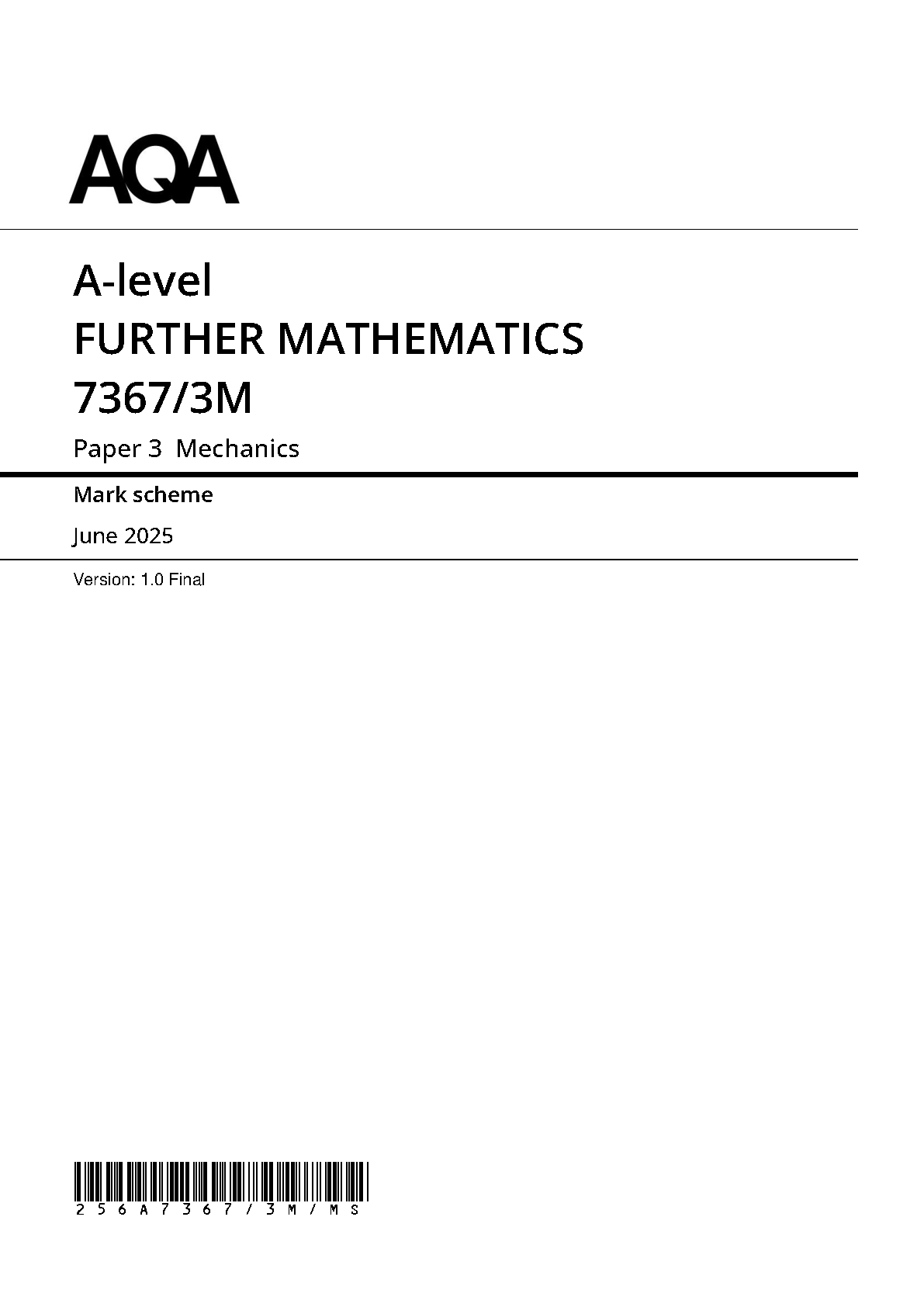 aqa a level further mathematics paper 3m 2025 mark scheme (7367/3m: mechanics). download this verified paper on www.leak...