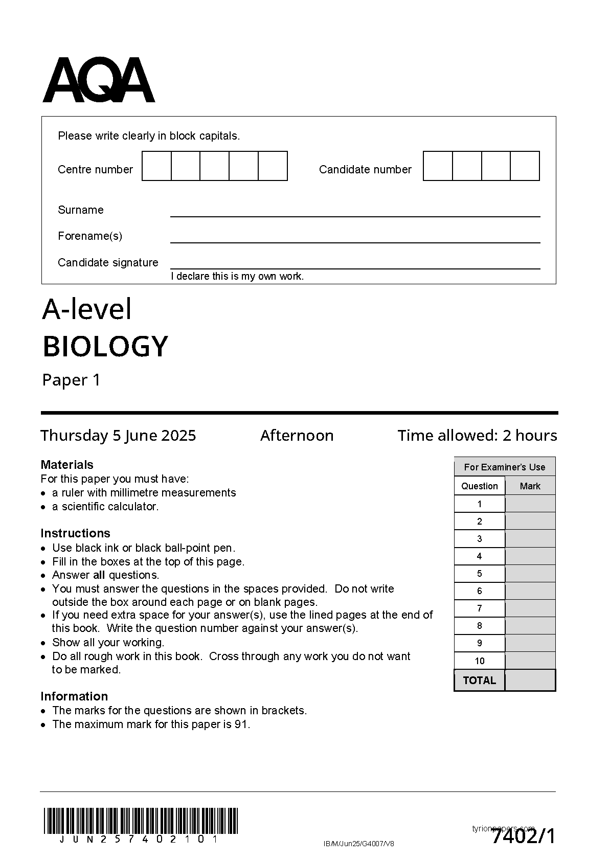 2025 aqa a level biology paper 1 (7402/1). download this verified paper on www.leakedexams.com and access the pdf instan...