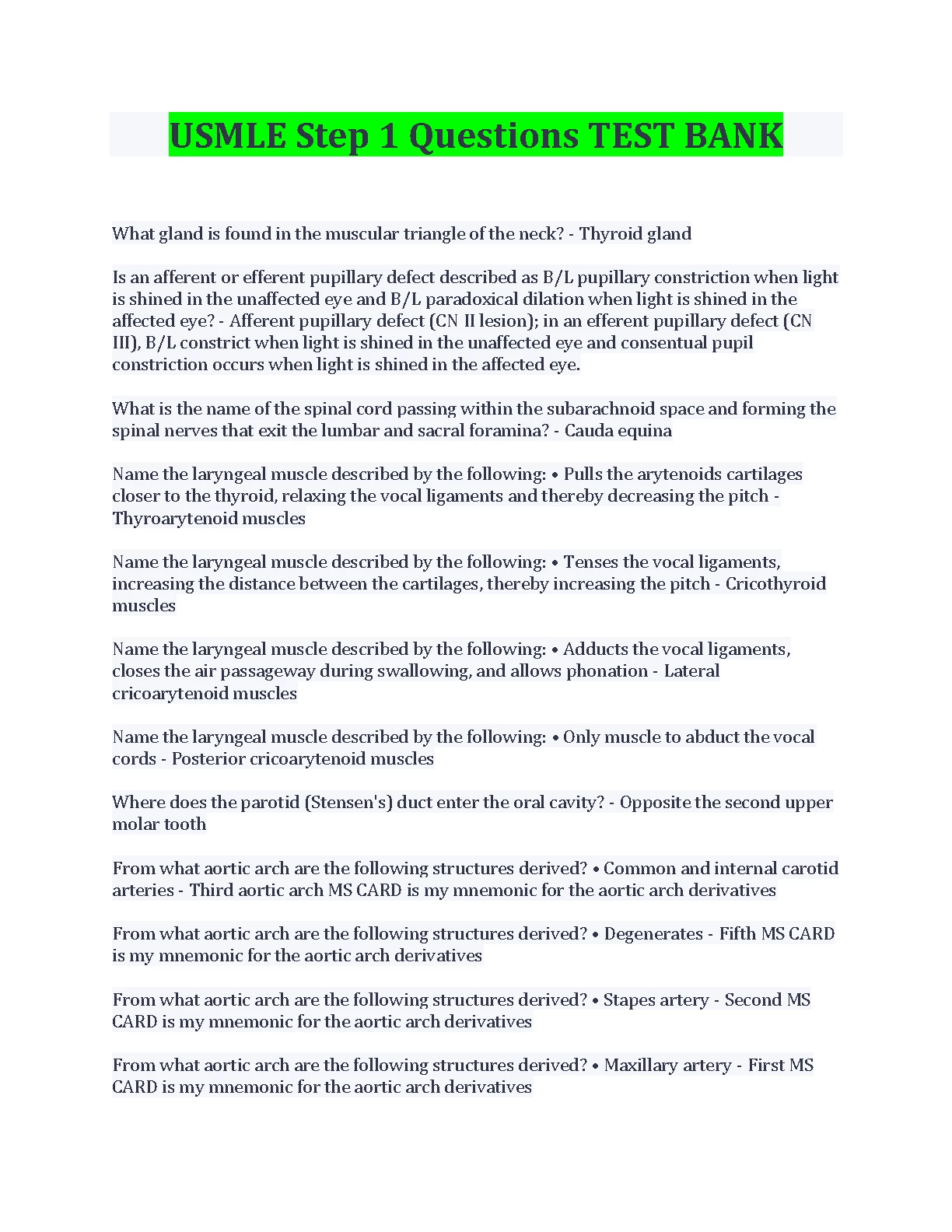 TEST BANK FOR USMILE STEP 1 QUESTIONS ANS ANSWERS 2024. TEST BANK FOR USMILE STEP 1 QUESTIONS ANS ANSWERS 2024 EXAM