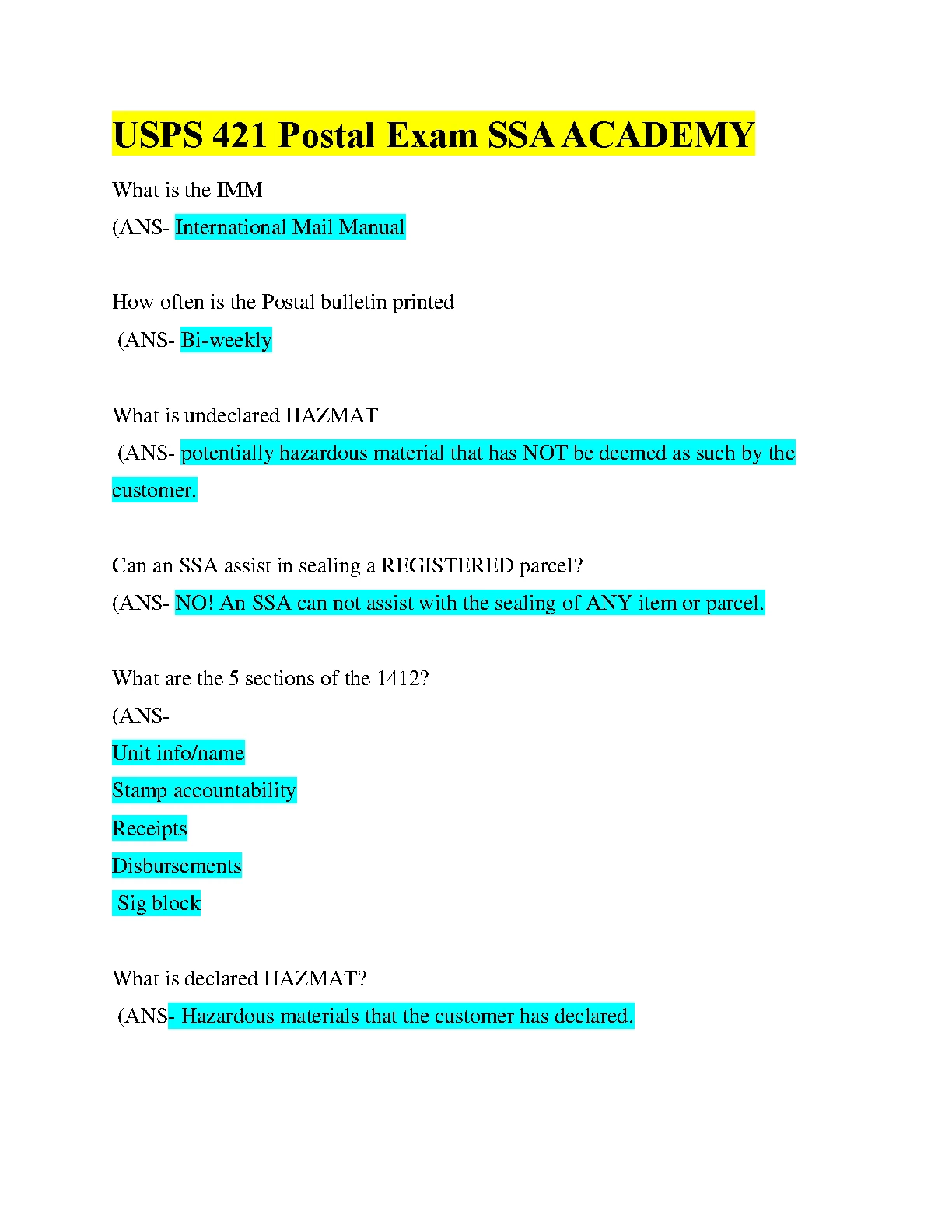 USPS 421 POSTAL EXAM SSA ACADEMY 2024. USPS 421 POSTAL EXAM SSA ACADEMY 2024 EXAM
