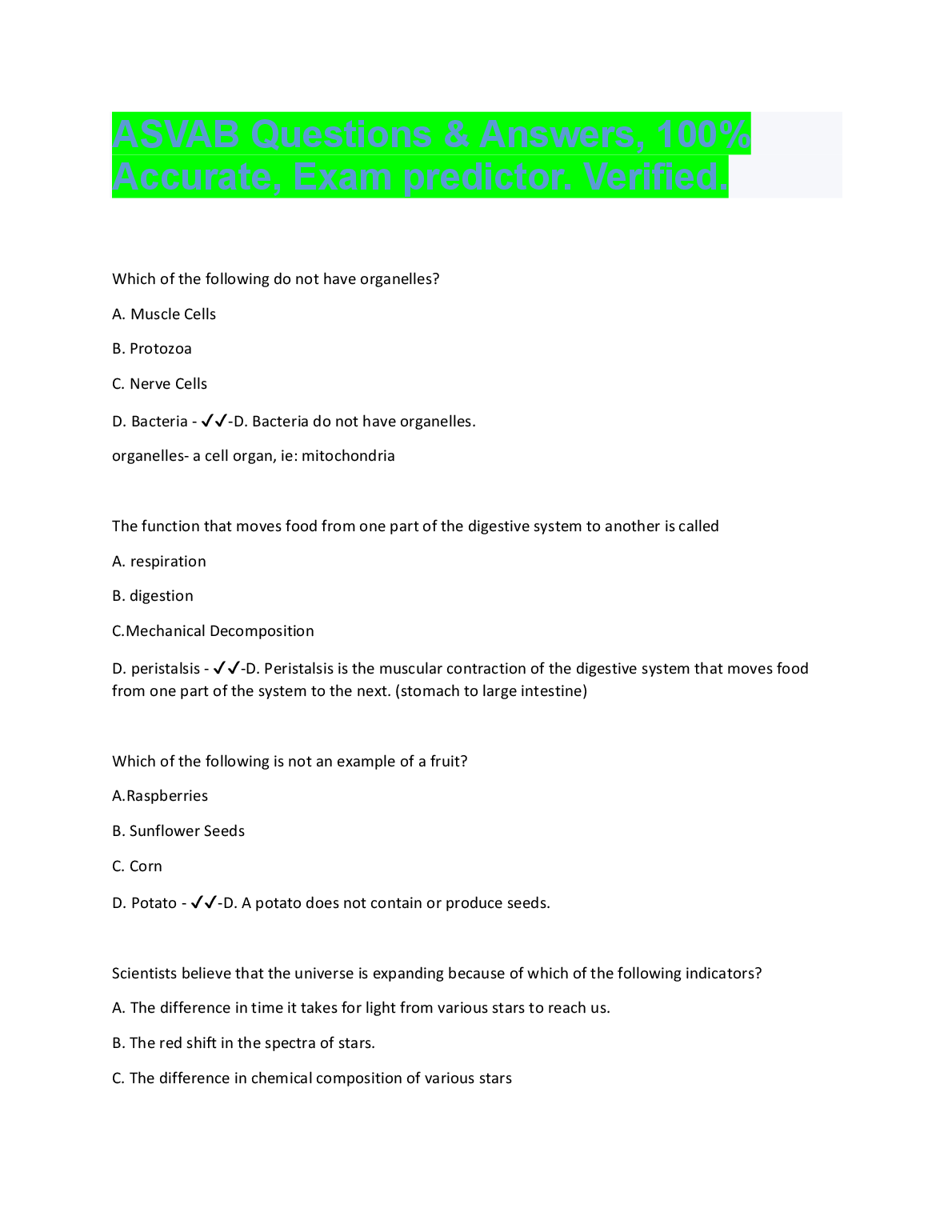 ASVAB Test Questions with Verified Answers Well Elaborated For Best Scores. ASVAB Test Questions with Verified Answers Well Elaborated For Best Scores EXAM