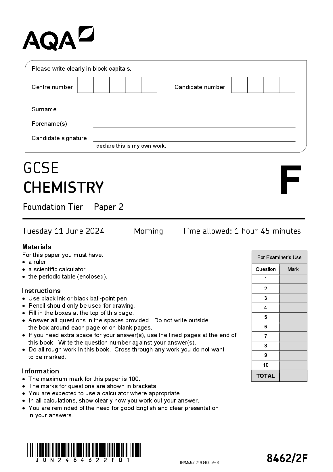 2024 aqa gcse chemistry paper 2 qp(8462/2f: foundation tier)